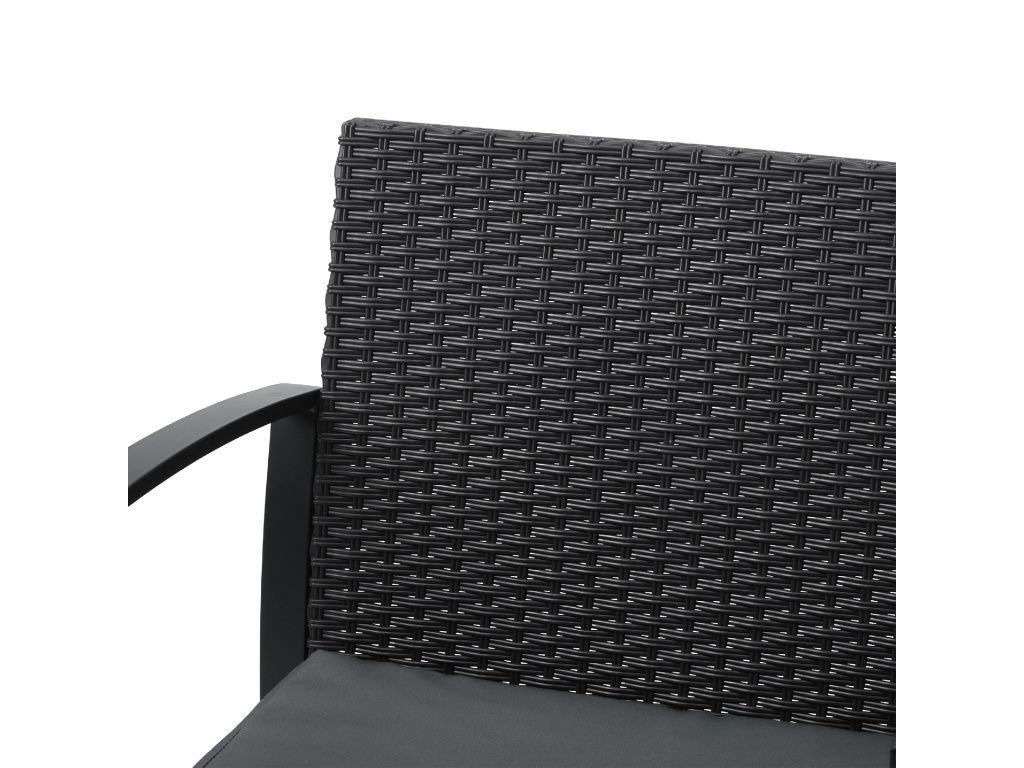 Tento zahradní set je navržený přesně pro ty, kdo chtějí proměnit balkon nebo menší terasu v útulné místo pro odpočinek. Elegantní kombinace pevné kovové konstrukce a výpletu v moderní tmavé barvě působí čistě, nadčasově a snadno zapadne do každého exteriéru – od rodinného domu až po městský byt.