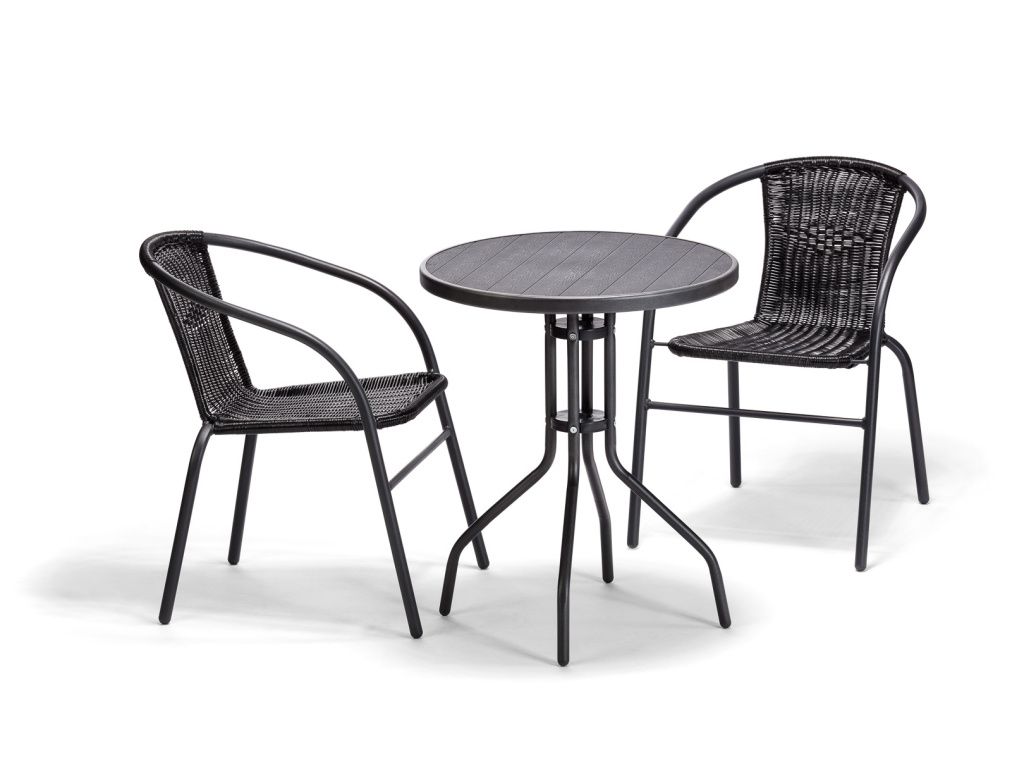 Elegantní bistro set, který promění balkon, terasu i zahradu v místo s atmosférou pravé kavárny. Lehká, pevná konstrukce, nadčasový černý design a kompaktní rozměry dělají z tohoto setu ideální řešení pro menší prostory. Styl, praktičnost a cena, která potěší.
