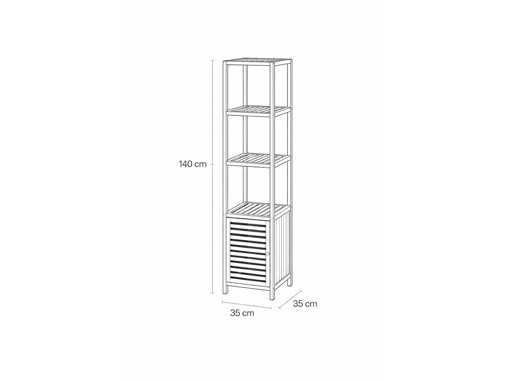 Tři otevřené police poskytují dostatek prostoru pro ručníky, kosmetiku nebo dekorace, zatímco spodní uzavíratelná skříňka umožňuje uložit věci, které chcete mít po ruce, ale ne na očích.
