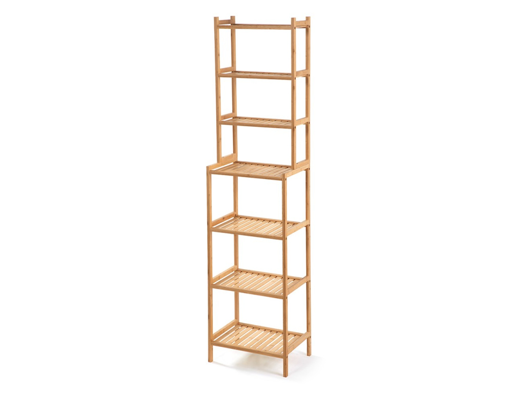 Policový díl s šesti prostornými policemi pro praktické uložení. Vyroben z kvalitního a odolného bambusu. Otevřená konstrukce zajišťuje přehlednost a snadný přístup k věcem. Vhodný do koupelny, kuchyně, obývacího pokoje i předsíně. Přírodní design dodá interiéru svěží a moderní vzhled.