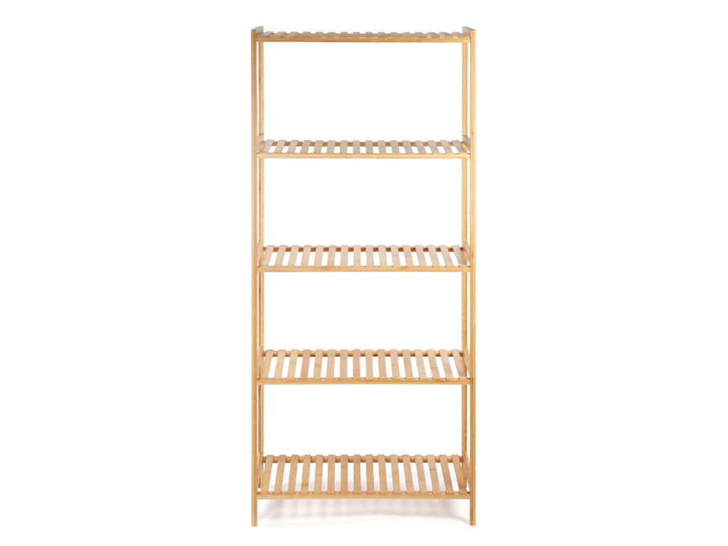 Praktický policový díl s pěti policemi. Vyroben z odolného bambusu pro dlouhou životnost. Otevřený lamelový design umožňuje cirkulaci vzduchu. Poskytuje dostatek úložného prostoru na ručníky, obuv, dekorace nebo jiné předměty. Vhodný do koupelny, kuchyně, obývacího pokoje či předsíně. Jednoduchý a funkční design, který zapadne do moderního i přírodního interiéru.