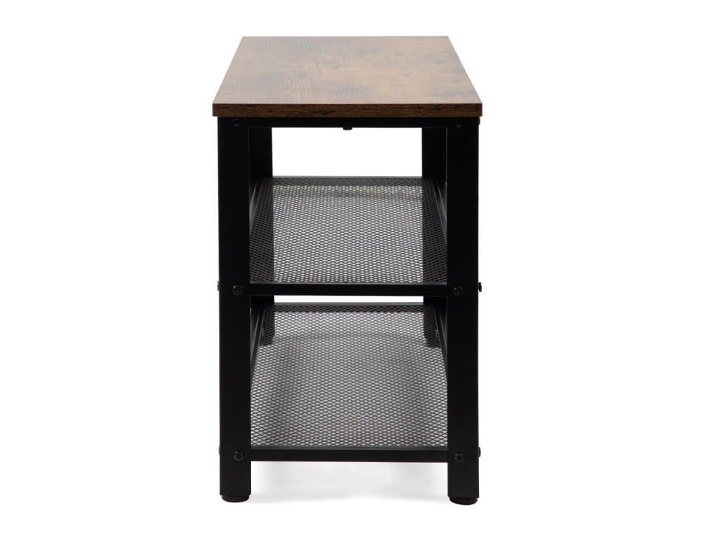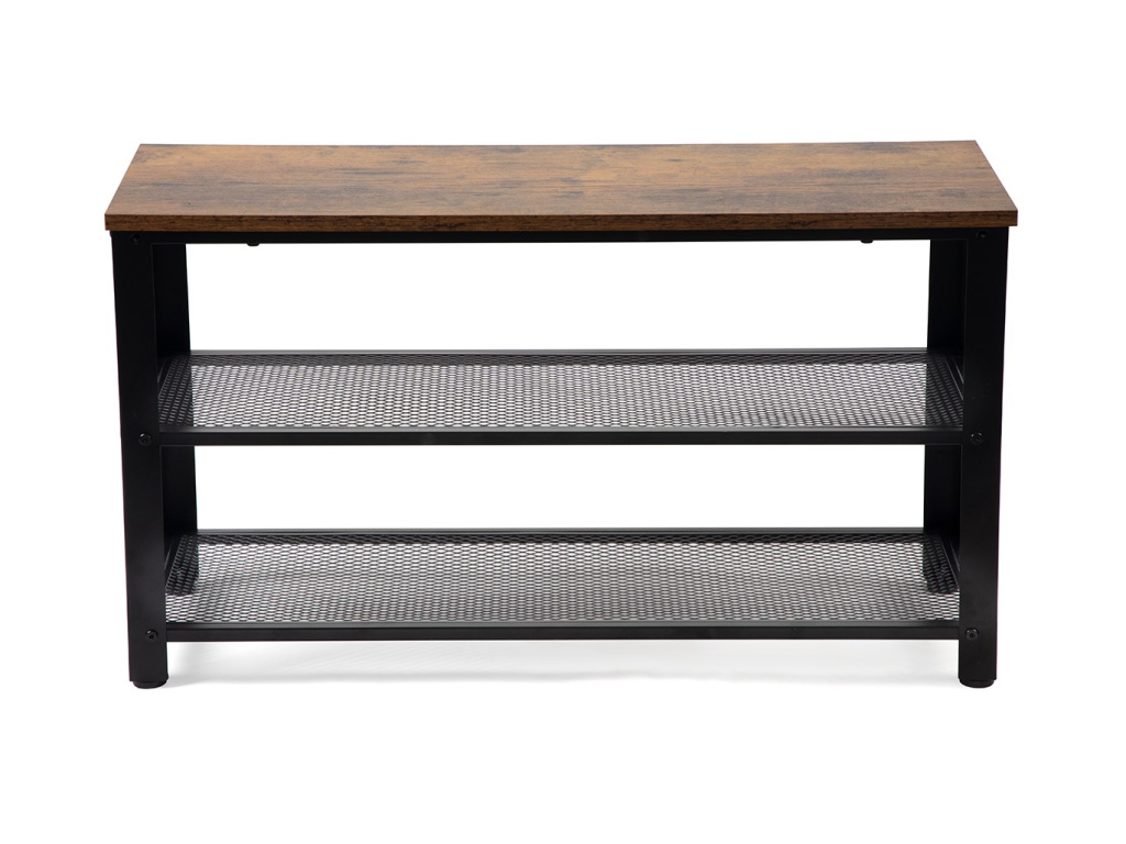 Botník s robustní kovovou konstrukcí a odolnou deskou. Dvě prostorné mřížkové police pro uložení obuvi a doplňků. Vrchní část lze využít jako odkládací plochu nebo lavici na sezení.
