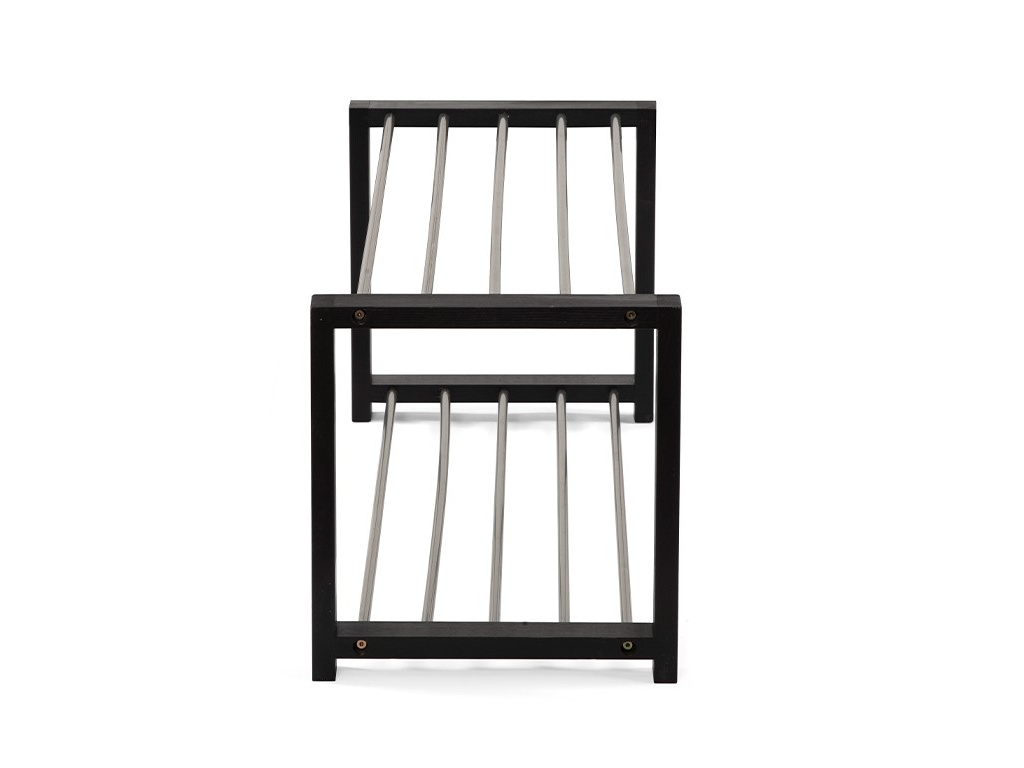 Botník s ocelovou konstrukcí v černé barvě a a ocelovými tyčemi ve stříbrné barvě, 32x80x30 cm.