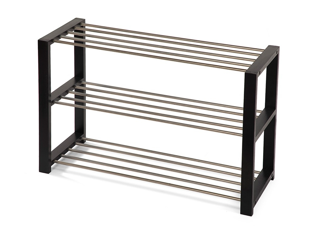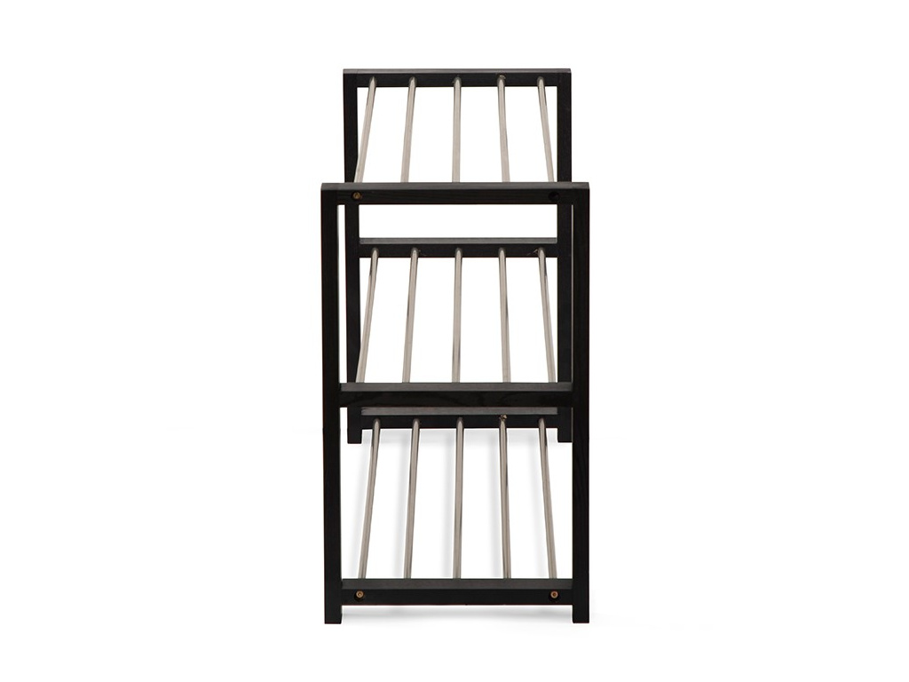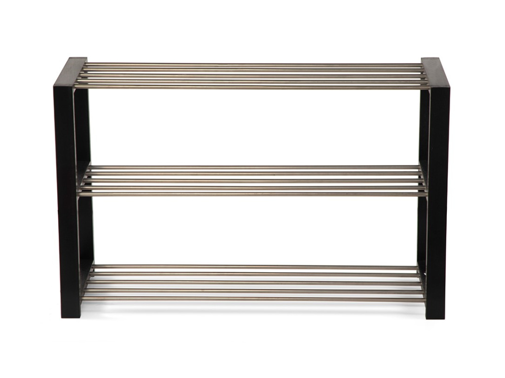 Botník s ocelovou konstrukcí v černé barvě a a ocelovými tyčemi ve stříbrné barvě.