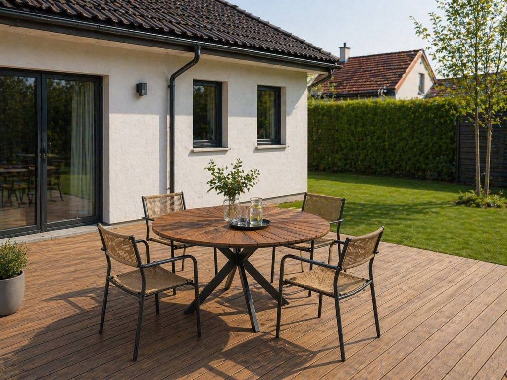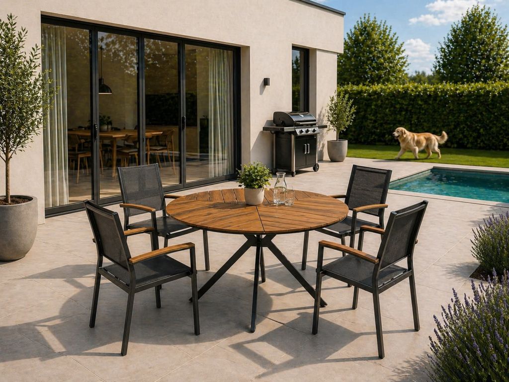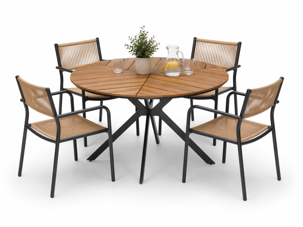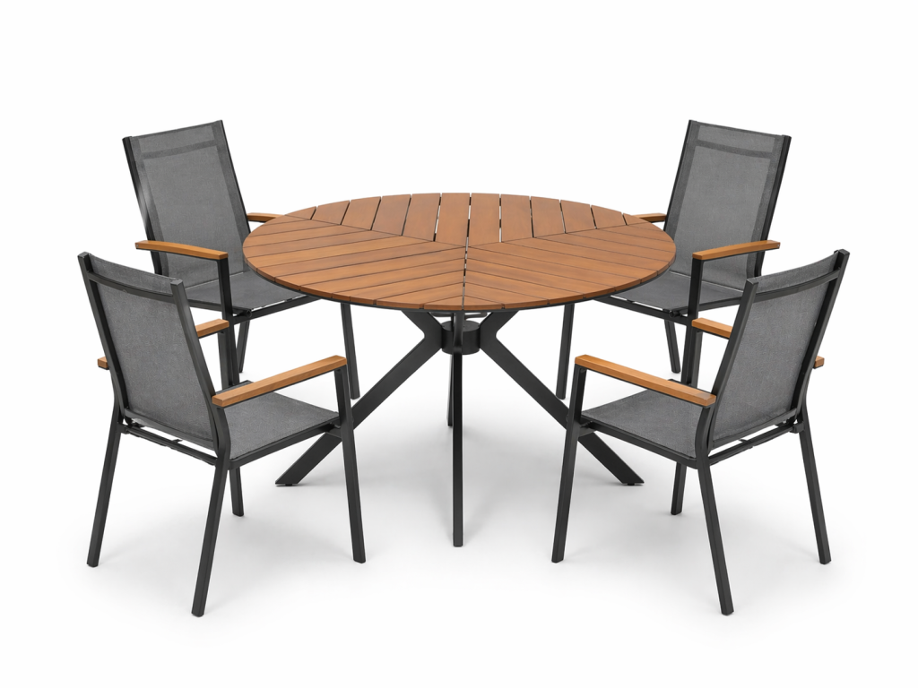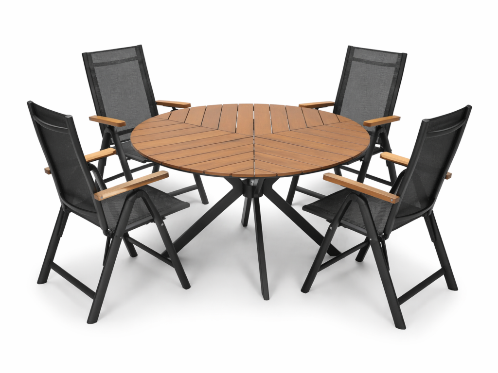 Round Garden Table Aluminium frame, tabletop made of artwood slats.