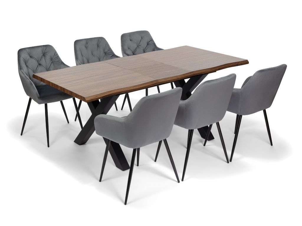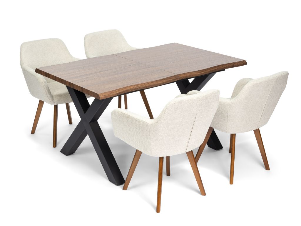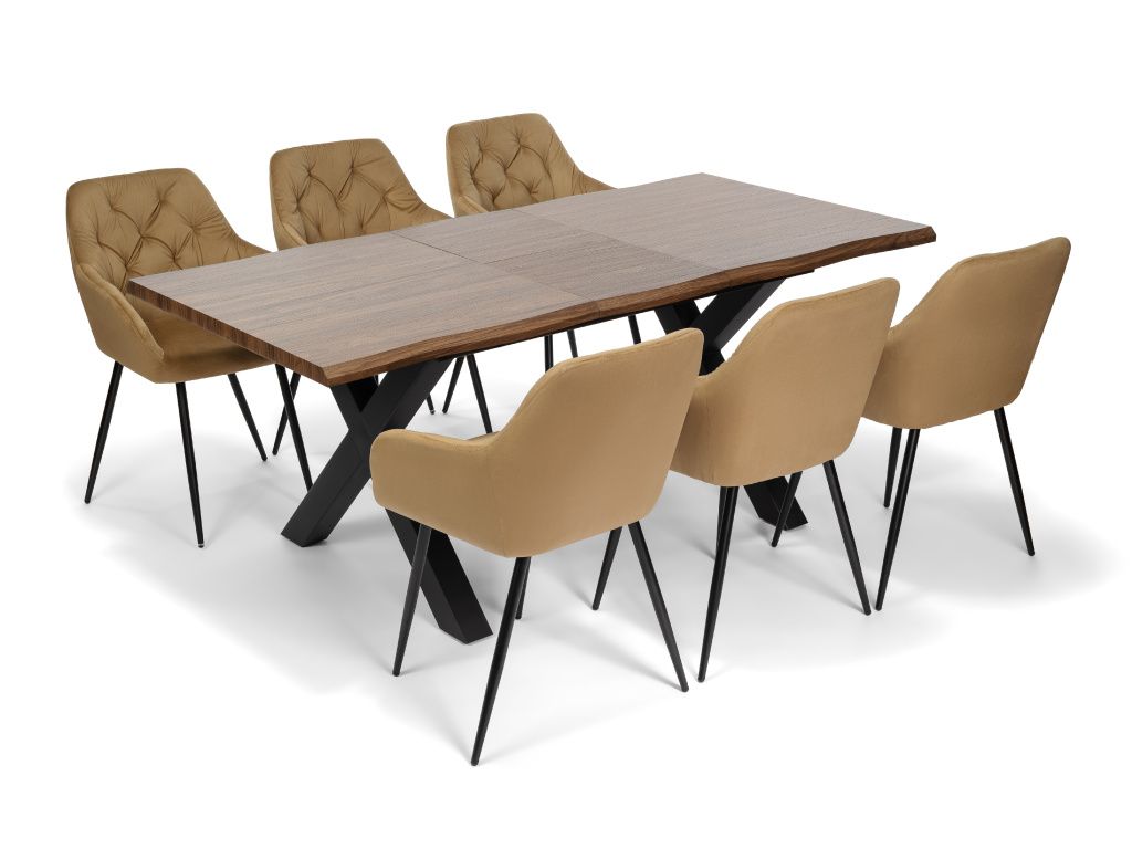 MDF deska, barva natural, práškované ocelové podnoží v černé barvě, rozkládací 140-170x90x75 cm