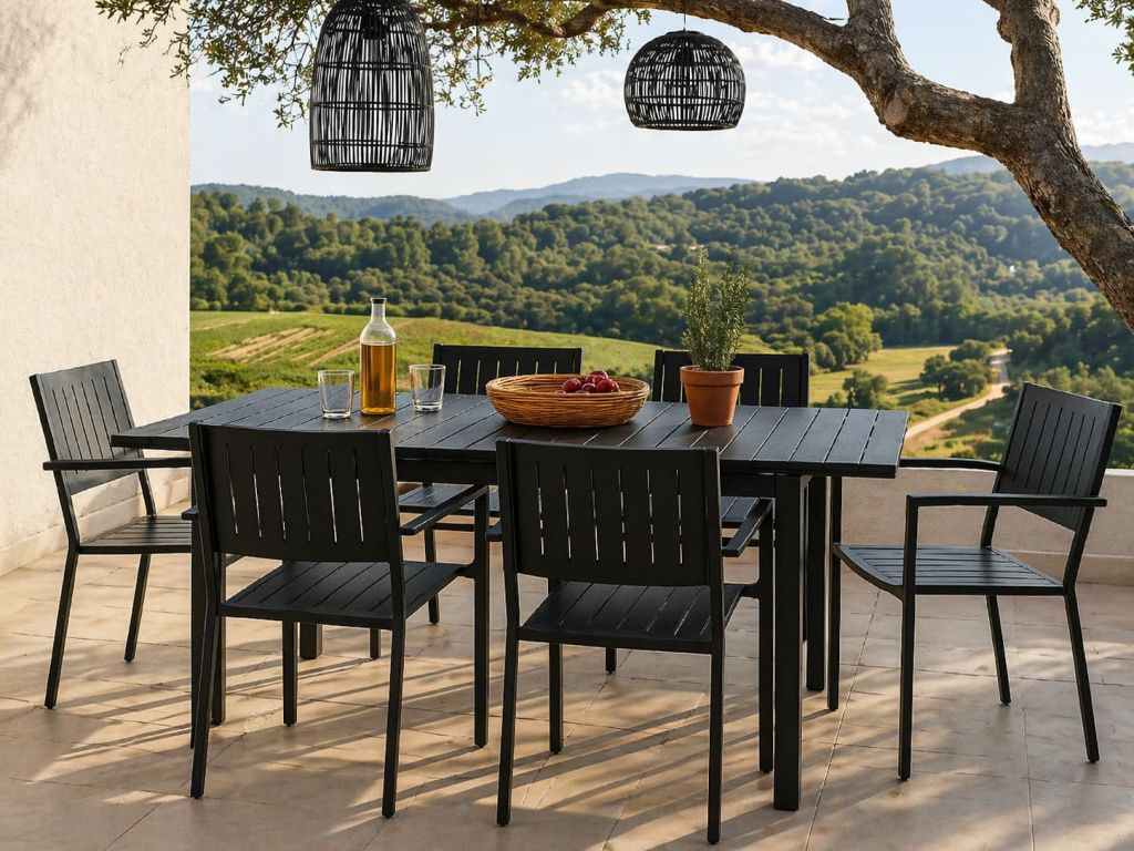 Extendable Garden Table – Aluminium frame, artwood slat tabletop.