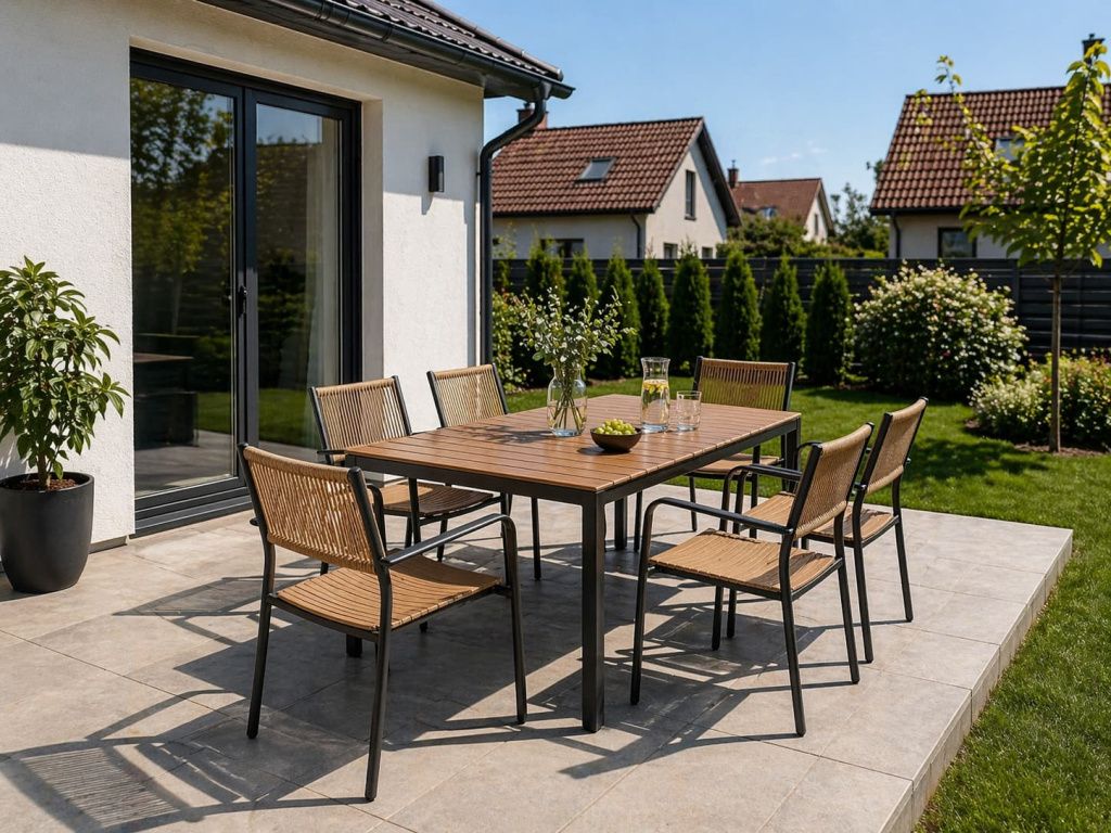 Garden Table – Aluminium frame, artwood slat tabletop.