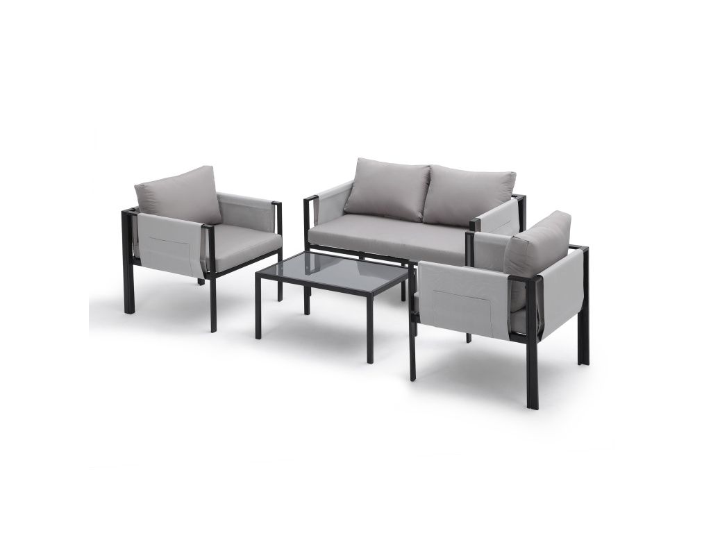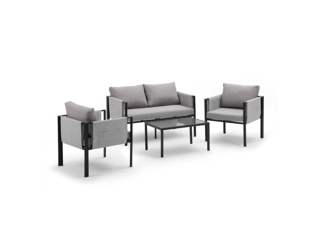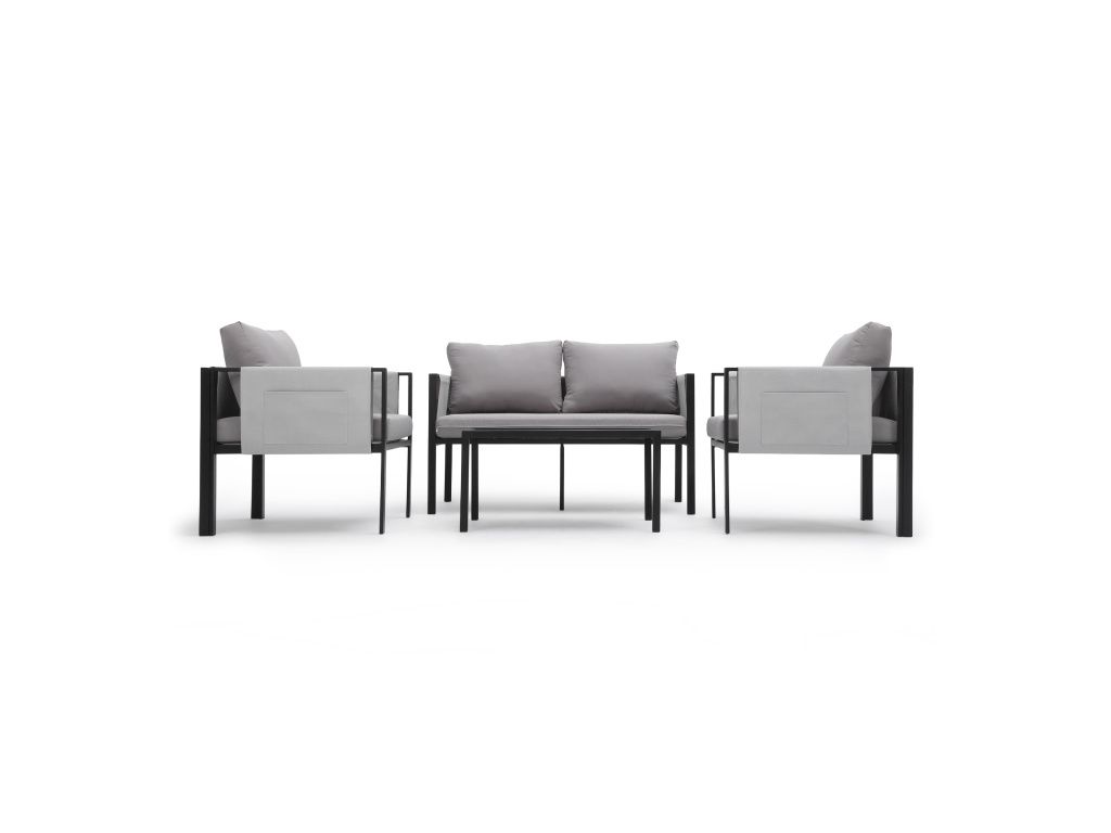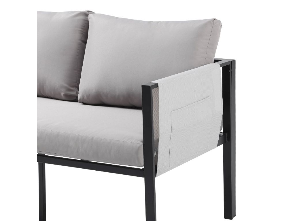 Garden Set 2+1+1+1 – Black steel frame with grey polyester cushions.