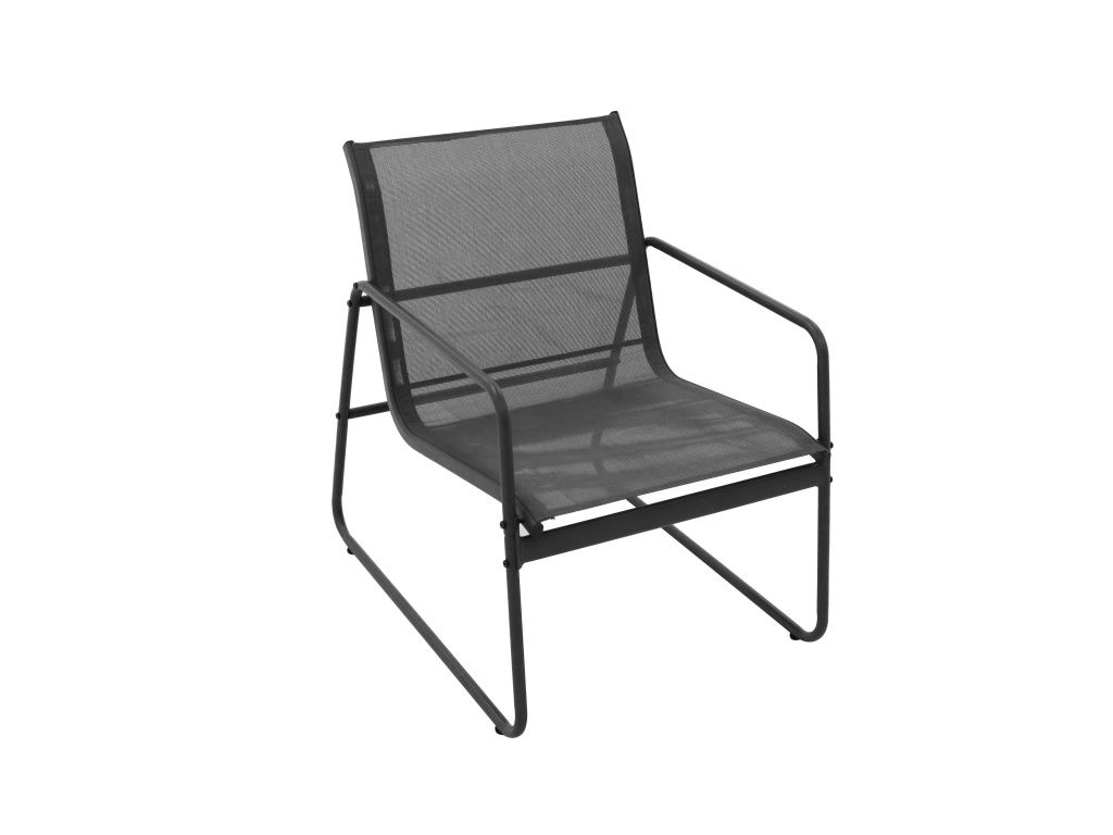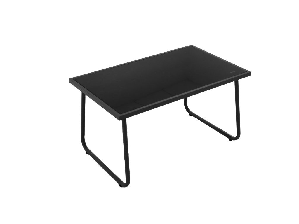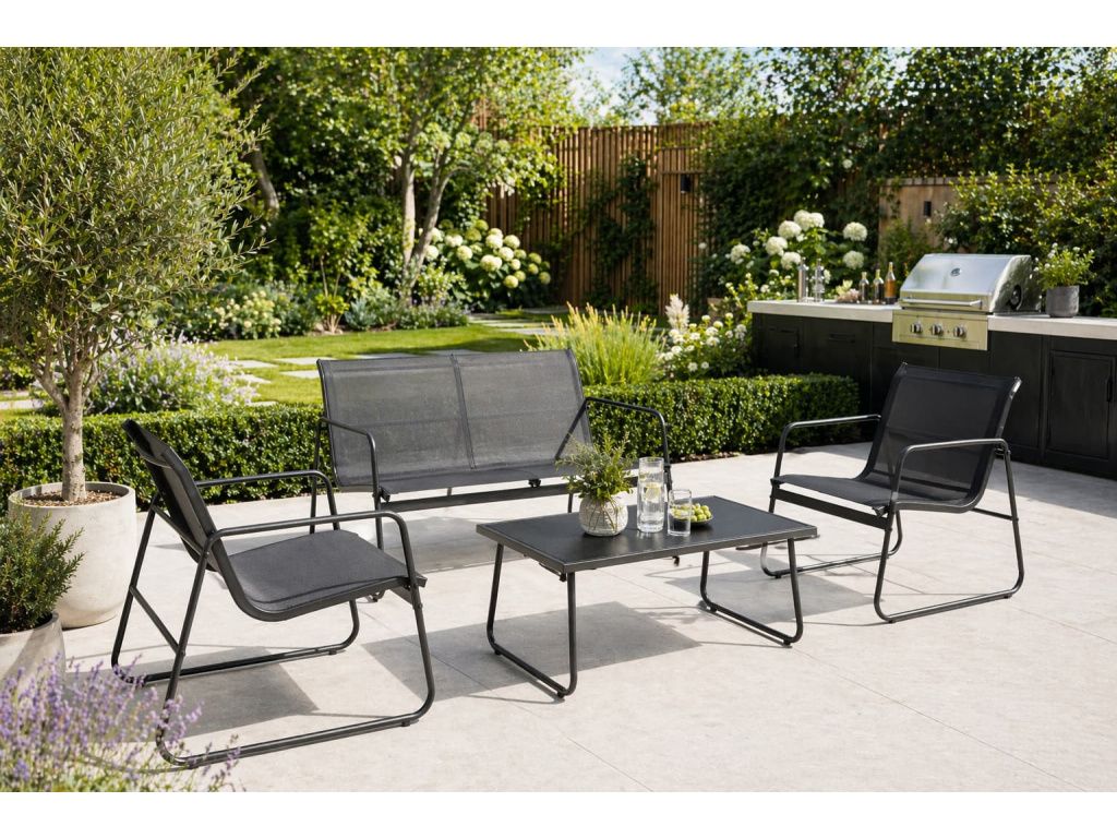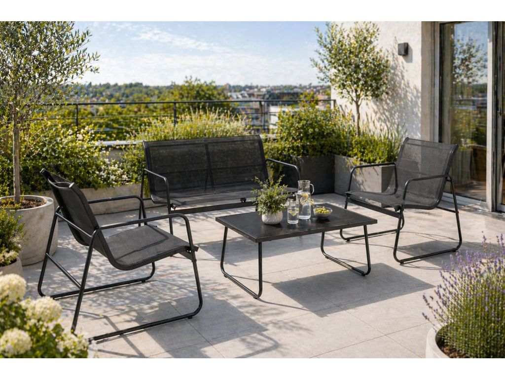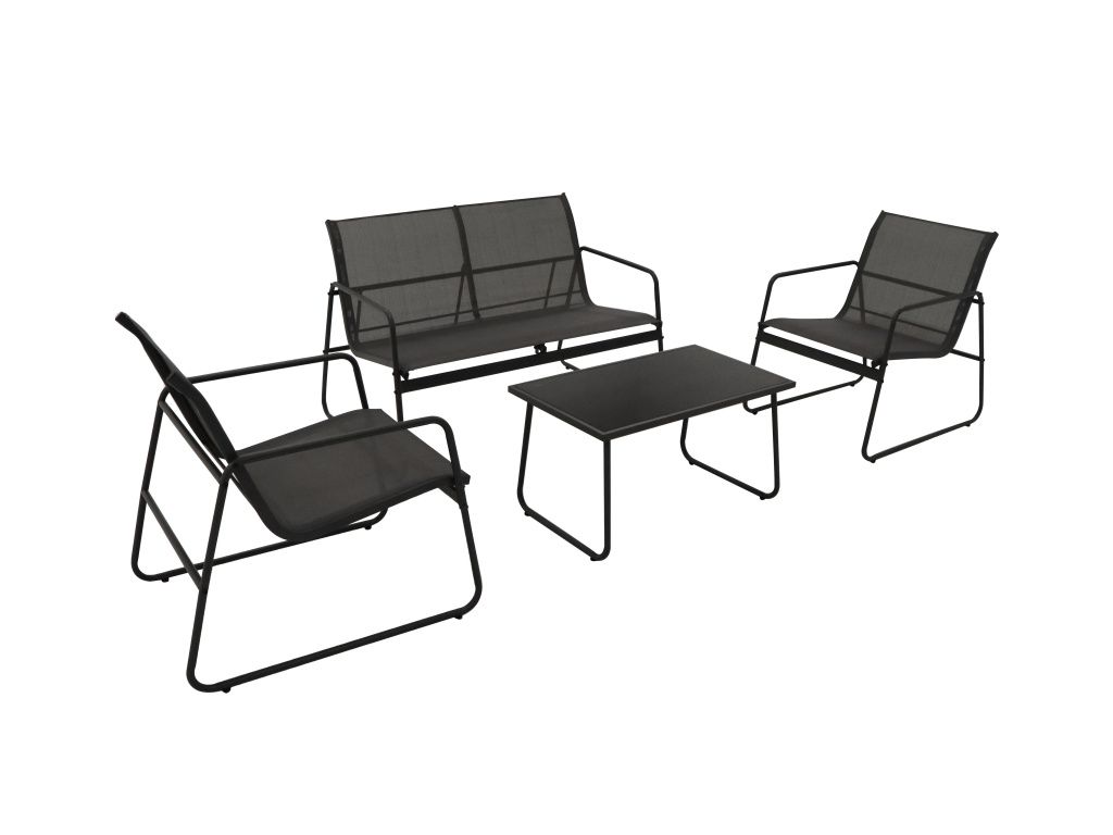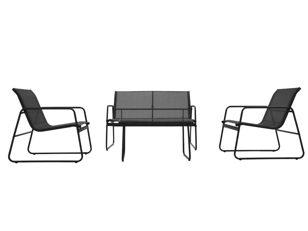 Garden Set 2+1+1+1 – Black steel frame with black textilene, table with glass top.