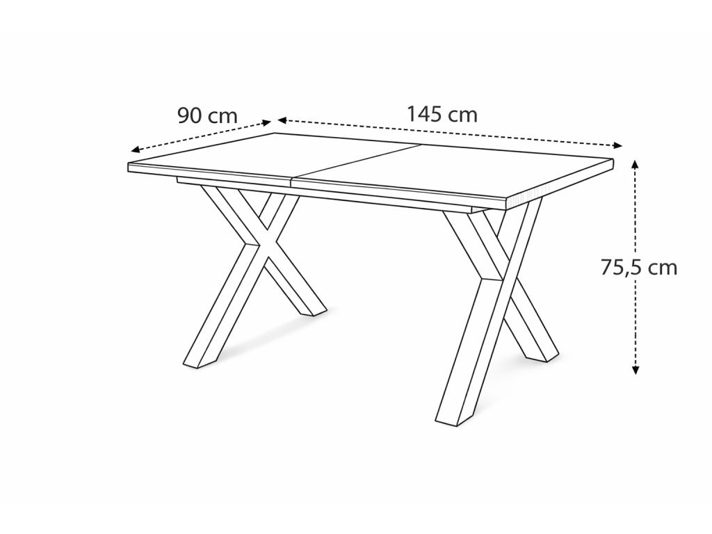 MDF deska, barva natural, práškované ocelové podnoží v černé barvě, rozkládací 140-170x90x75 cm