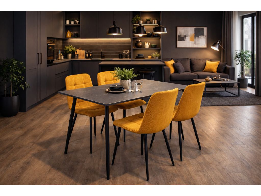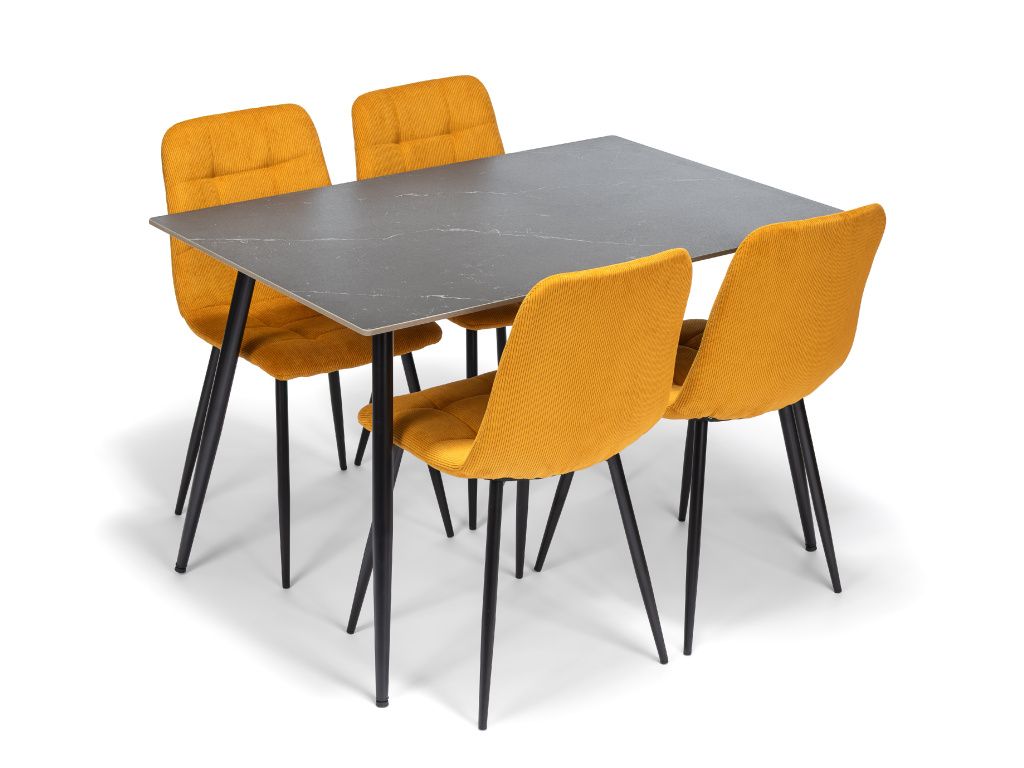 Jídelní stůl CERAMON 120 černá + 4ks jídelní židle ARIA hořčicová