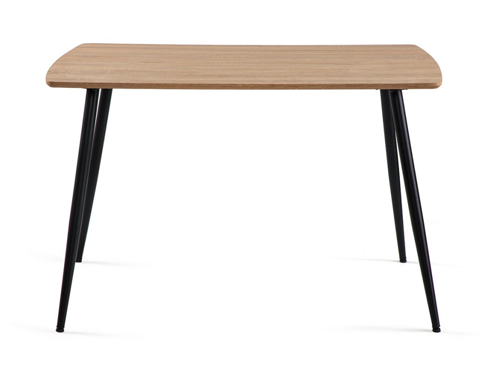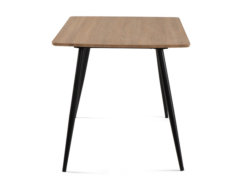 Dodejte svému interiéru lehkost, eleganci a styl s tímto moderním jídelním stolem. Kombinuje přírodní vzhled dřeva s černými kovovými nohami, které mu dodávají nadčasový industriální charakter. Díky čistým liniím a univerzálnímu designu se hodí do různých typů interiérů.
