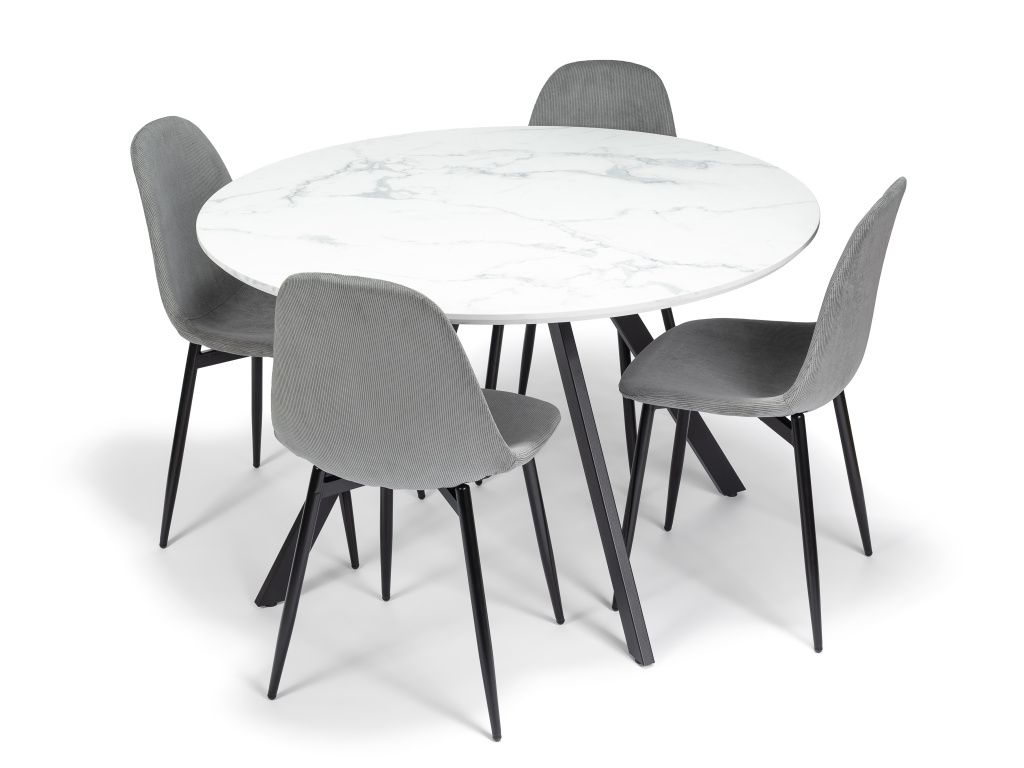 Jídelní stůl GYRUS 120 bílá + 4ks jídelní židle Marie šedá