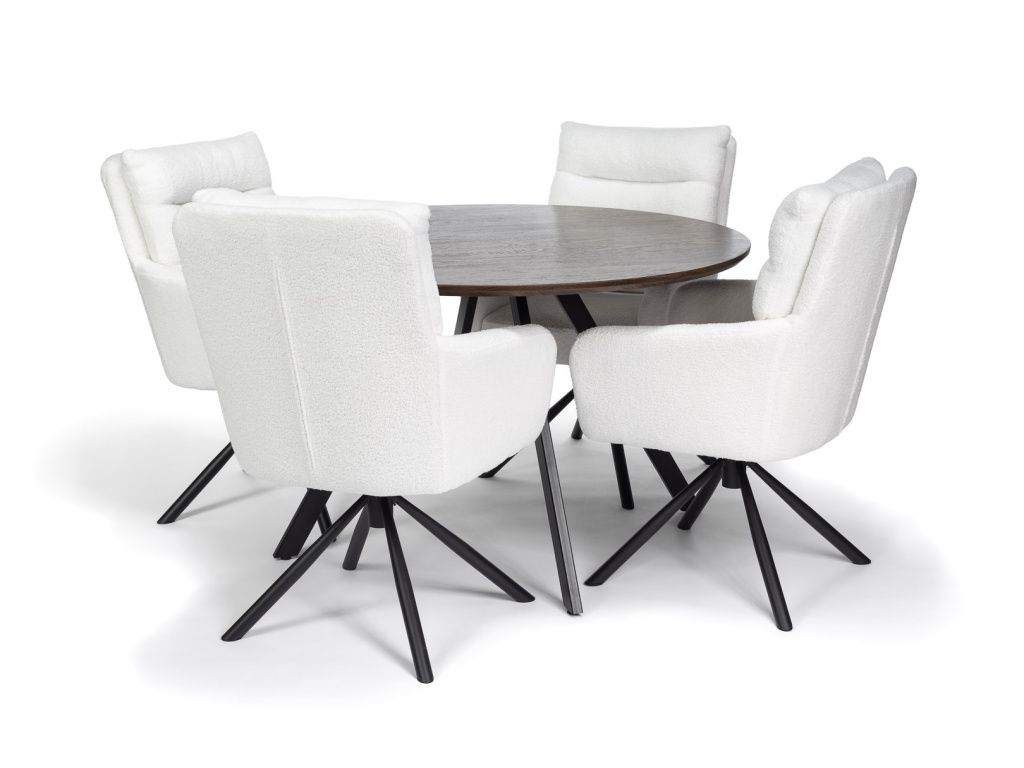 Tento moderní kulatý jídelní stůl je ideální volbou pro ty, kteří hledají spojení vkusného designu a praktičnosti.