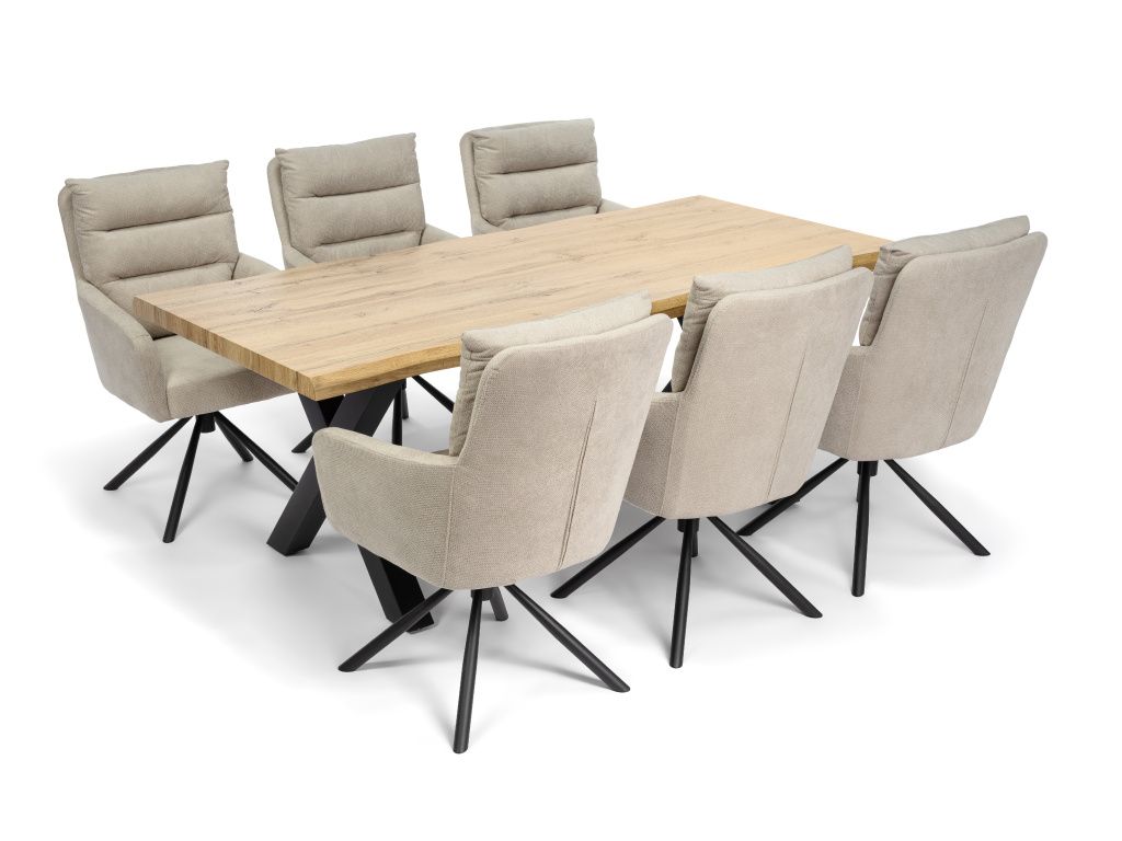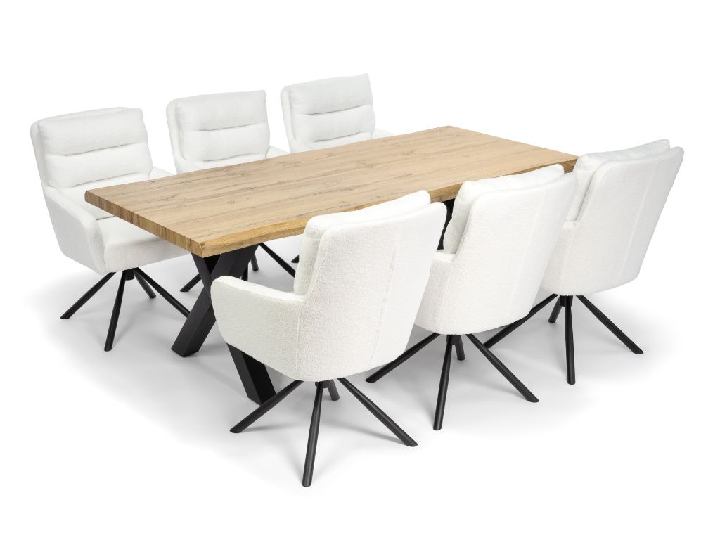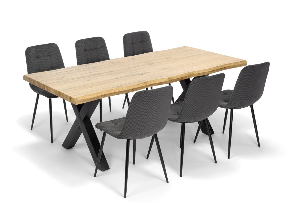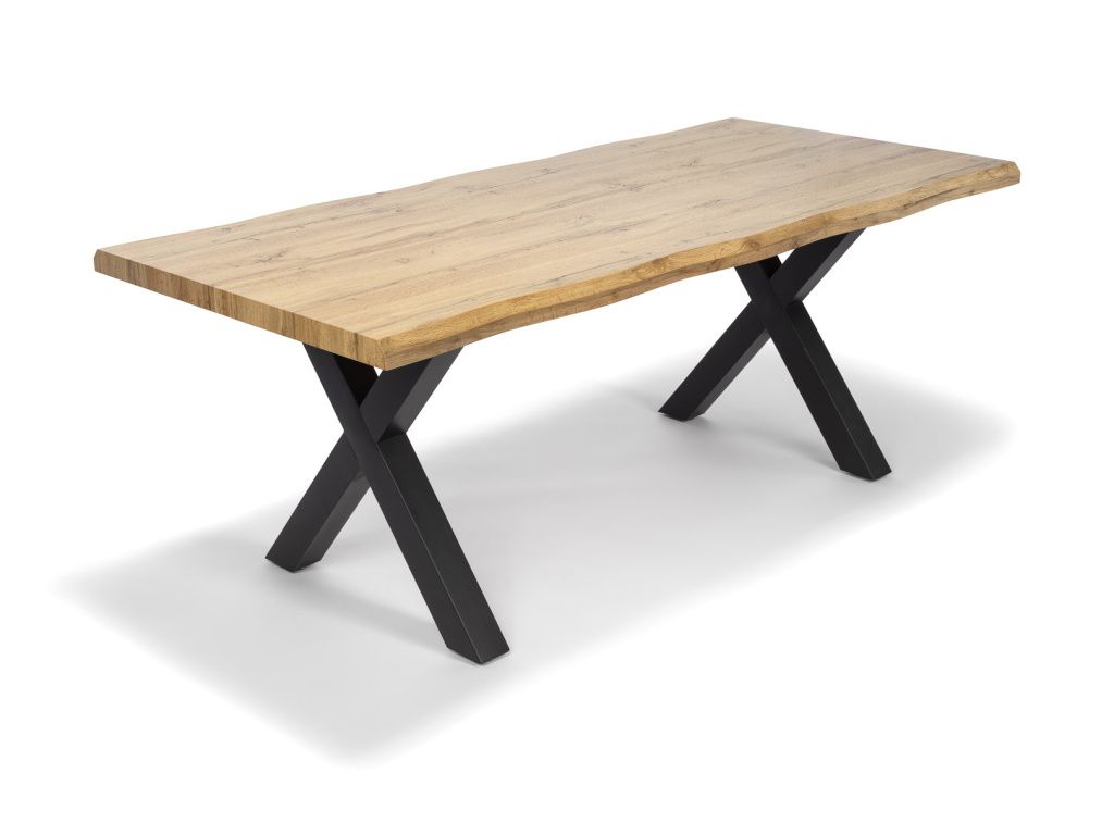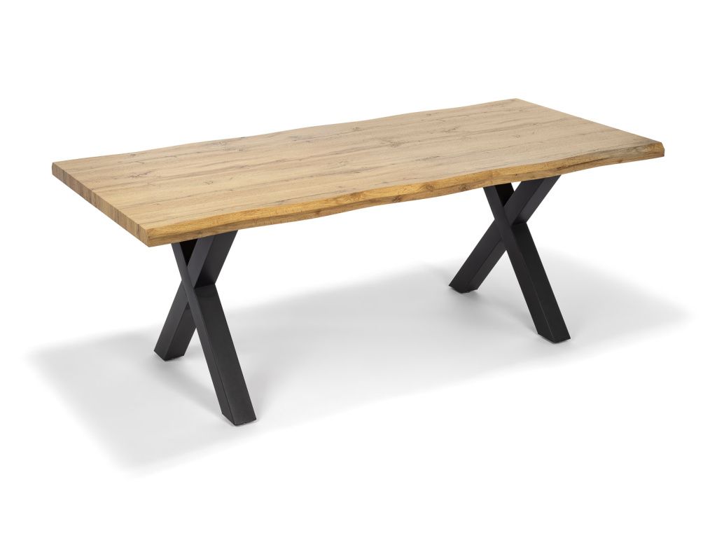 Jídelní stůl v industriálním stylu je výrazným prvkem každé jídelny. Kombinace masivně působící dubové desky v přírodním dekoru a stabilních kovových noh ve tvaru X vytváří harmonii mezi teplem dřeva a surovostí kovu. Tento kontrast dodává interiéru charakter, originalitu a nadčasový vzhled, který nepodléhá trendům.
