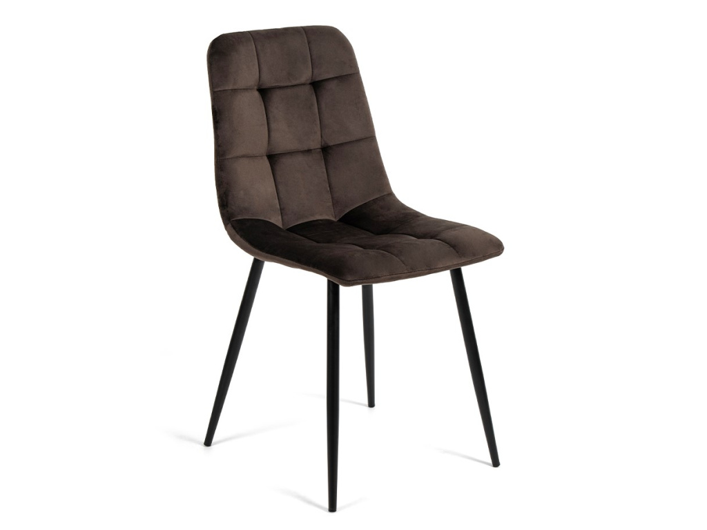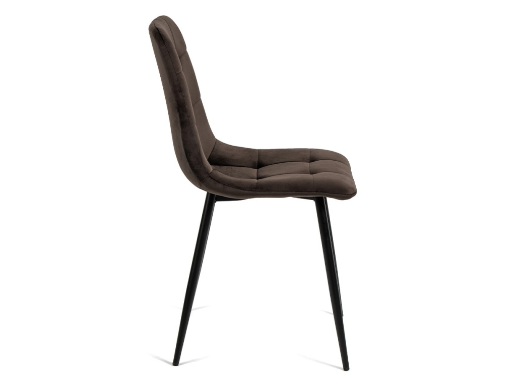 Elegantní židle s nadčasovým designem. Pohodlné čalounění v hnědém sametovém provedení s prošíváním. Stabilní kovové nohy v černé barvě. Vhodná do jídelny, obývacího pokoje i pracovny. Spojení komfortu, stylu a odolnosti.