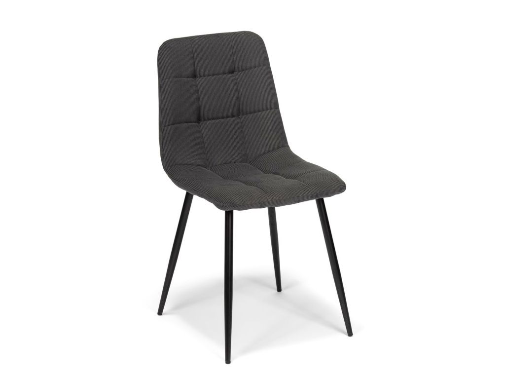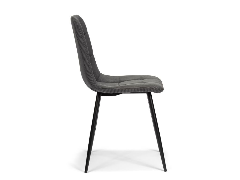 Jídelní židle s ocelovým podnožím v černé barvě, šedý manšestrový potah. Dodávaná v demontu.