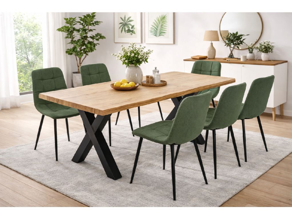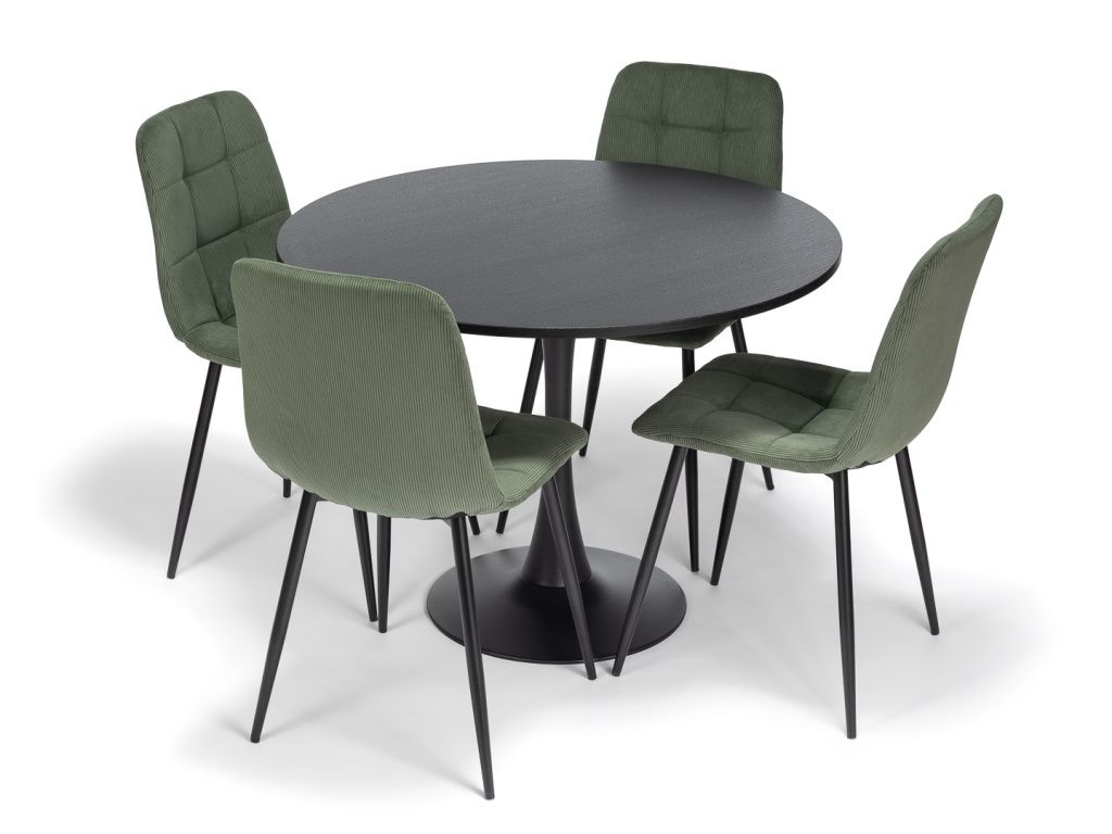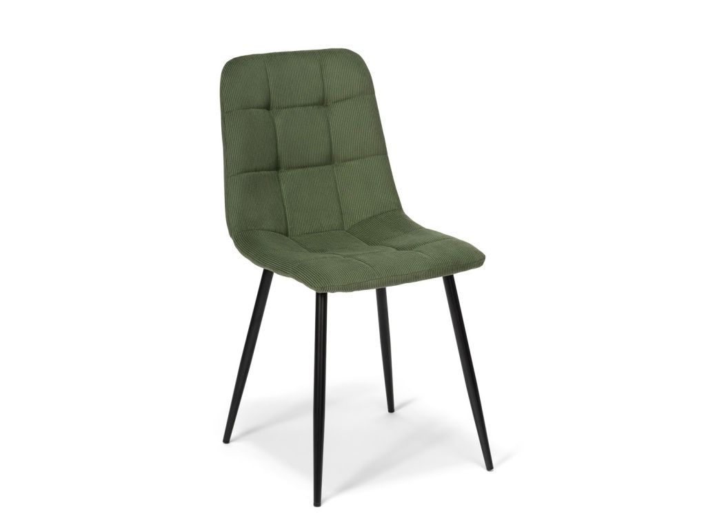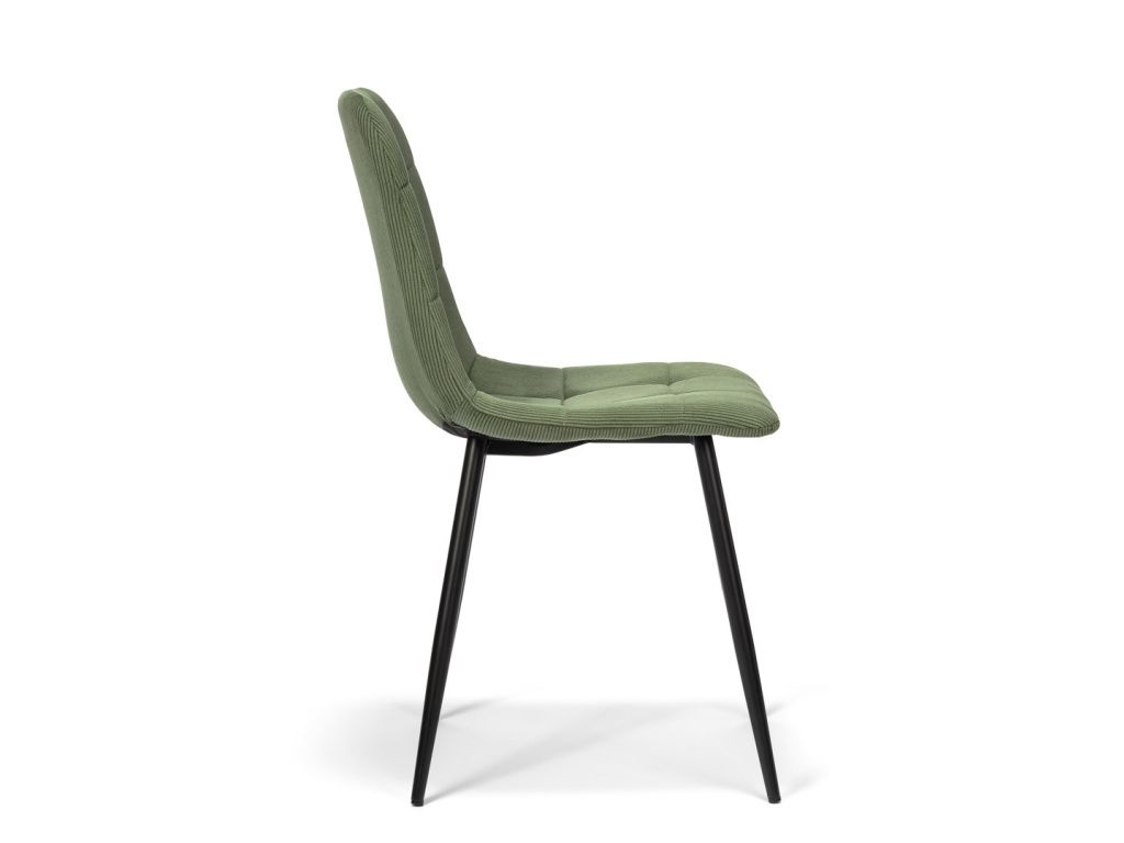 Moderní židle s elegantním designem. Pohodlné čalounění v zelené manšestrové látce s prošíváním. Stabilní kovové nohy v černém provedení. Ideální do jídelny, obývacího pokoje i pracovny. Kombinace komfortu, odolnosti a stylového vzhledu.