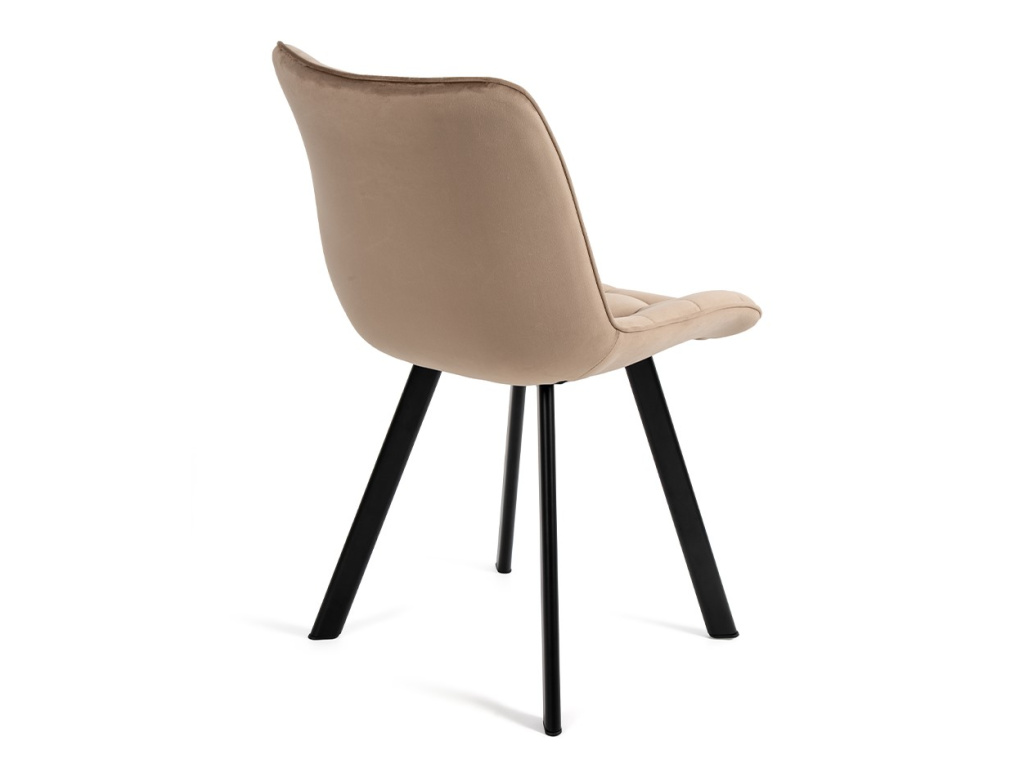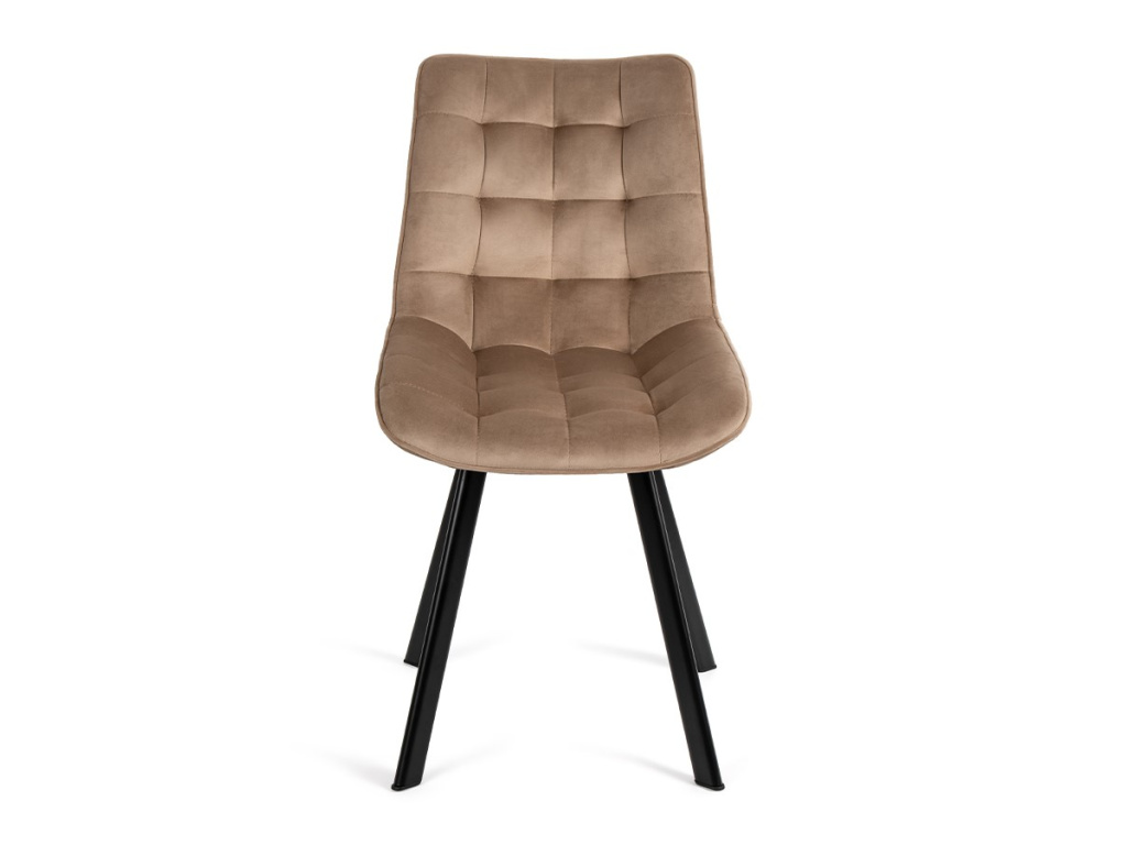 Židle Bella je navržena pro každodenní pohodlí i vizuální lehkost v interiéru. Měkký sametový potah v béžovém odstínu vytváří příjemný kontrast s černými kovovými nohami a snadno zapadne k různým typům stolů.
