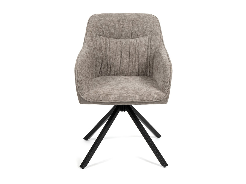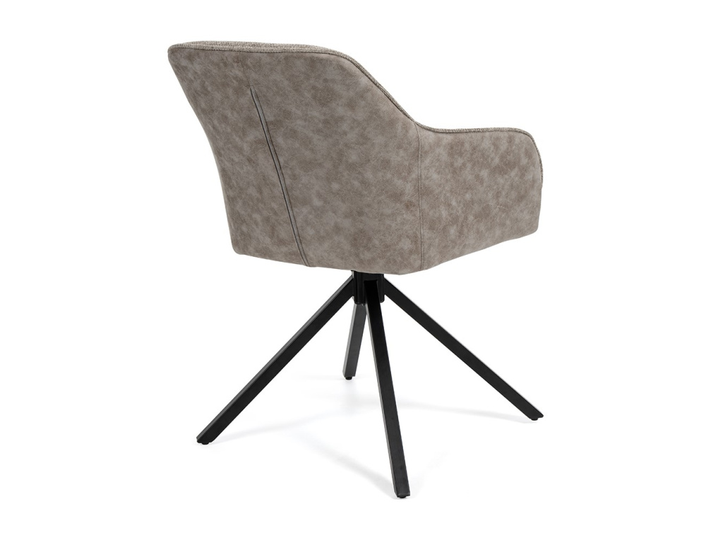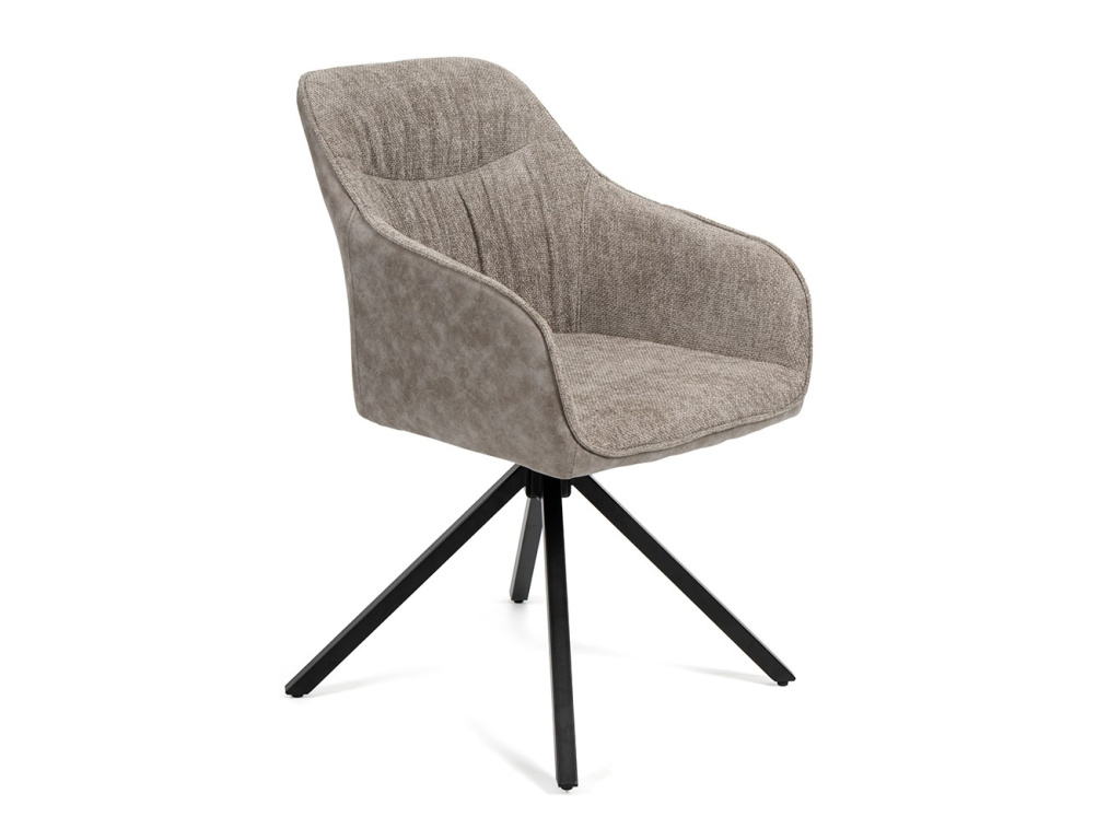 Stylová židle s područkami a moderním vzhledem. Pohodlné čalounění v šedé látce s elegantním kontrastním korpusem. Stabilní kovová podnož s otočnou funkcí. Skvěle se hodí do jídelny, pracovny i kanceláře. Spojuje komfort, praktičnost a nadčasový design.