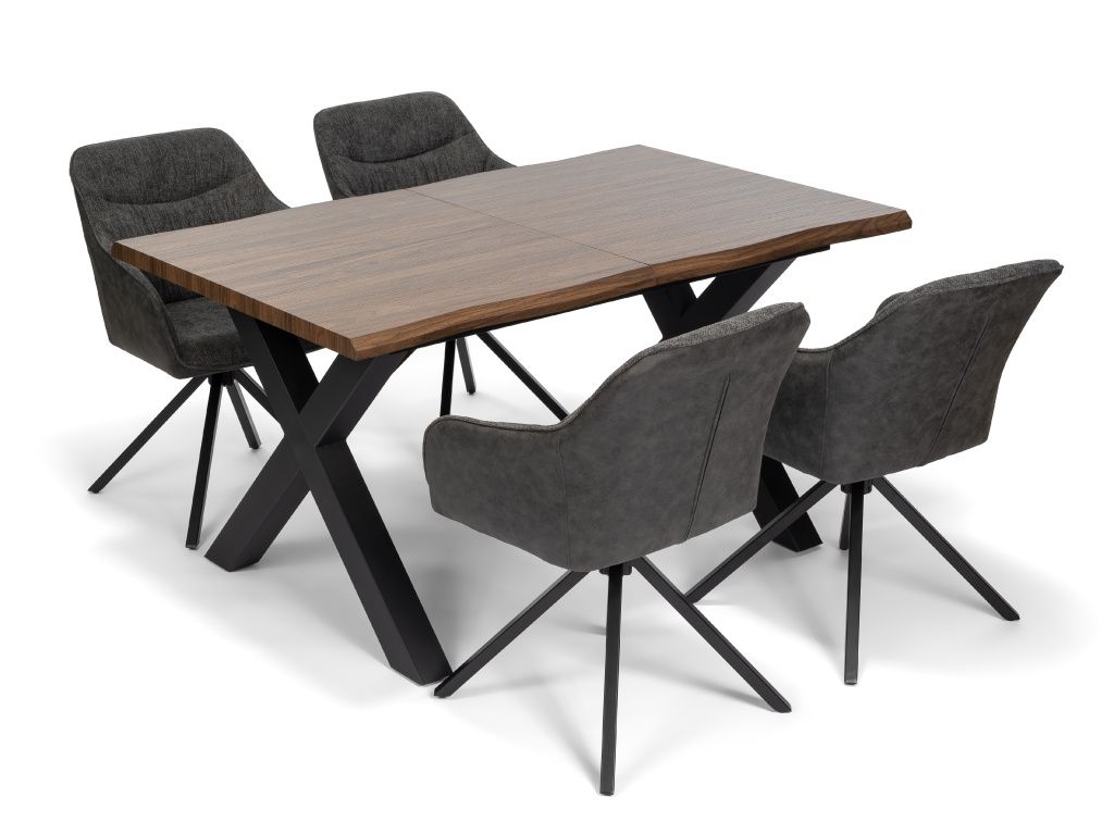 Moderní židle s područkami a elegantním designem. Pohodlné čalounění v tmavě šedé látce s kontrastním korpusem. Stabilní kovová podnož s otočnou funkcí. Vhodná do jídelny, pracovny i kanceláře. Spojuje komfort, odolnost a nadčasový styl.