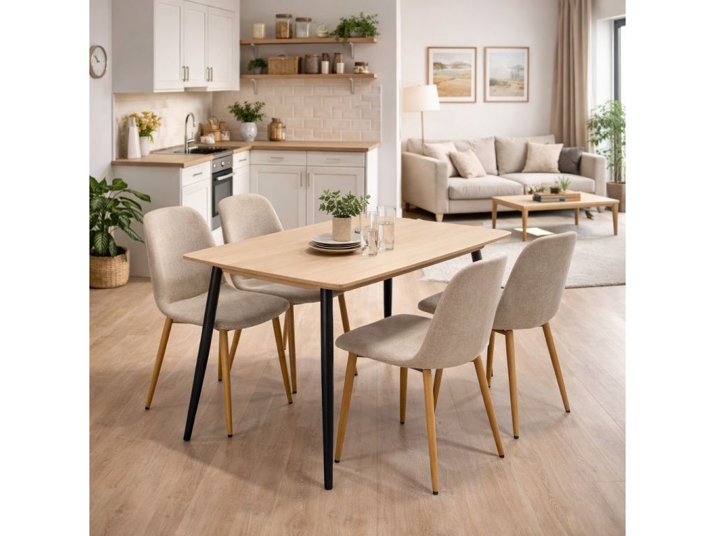 Nadčasový a elegantní design. Pohodlné polstrované sedátko v neutrální béžové barvě. Stabilní nohy v dekoru dřeva pro přírodní vzhled. Vhodná do jídelny, kuchyně i moderní pracovny. Kombinace komfortu, jednoduchosti a stylu.
