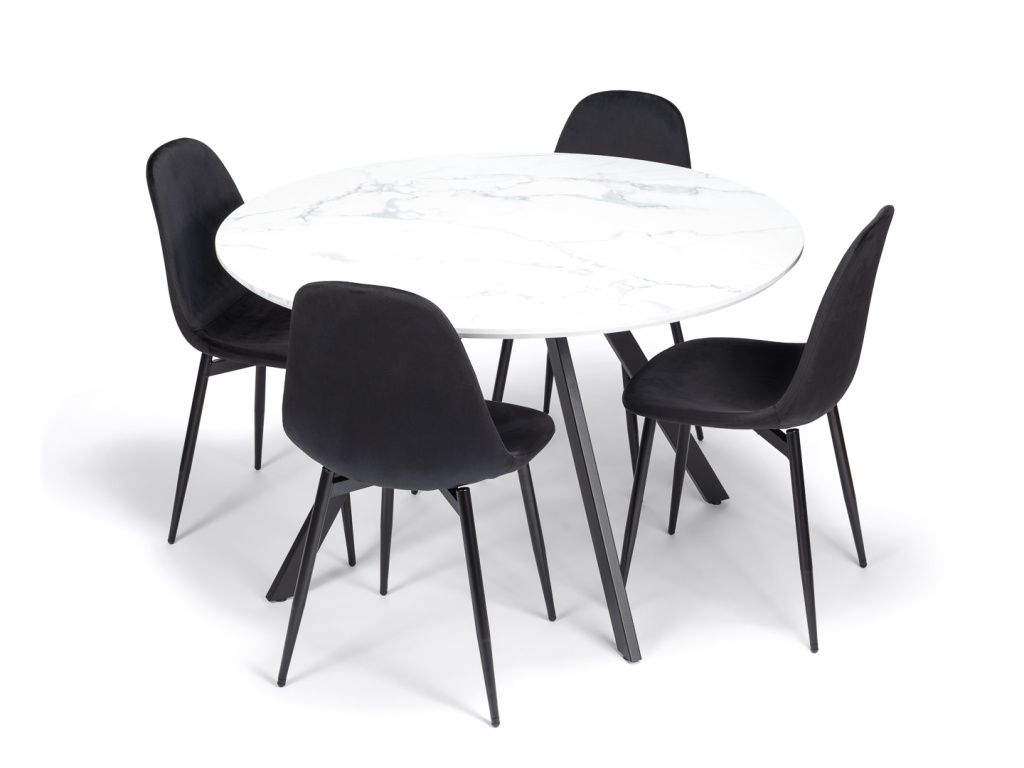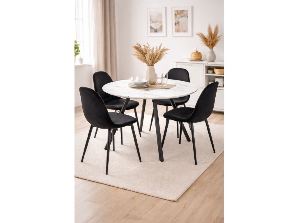 Díky univerzální černé barvě se snadno kombinuje s různými typy stolů – od dřevěných až po moderní mramorové desky.
