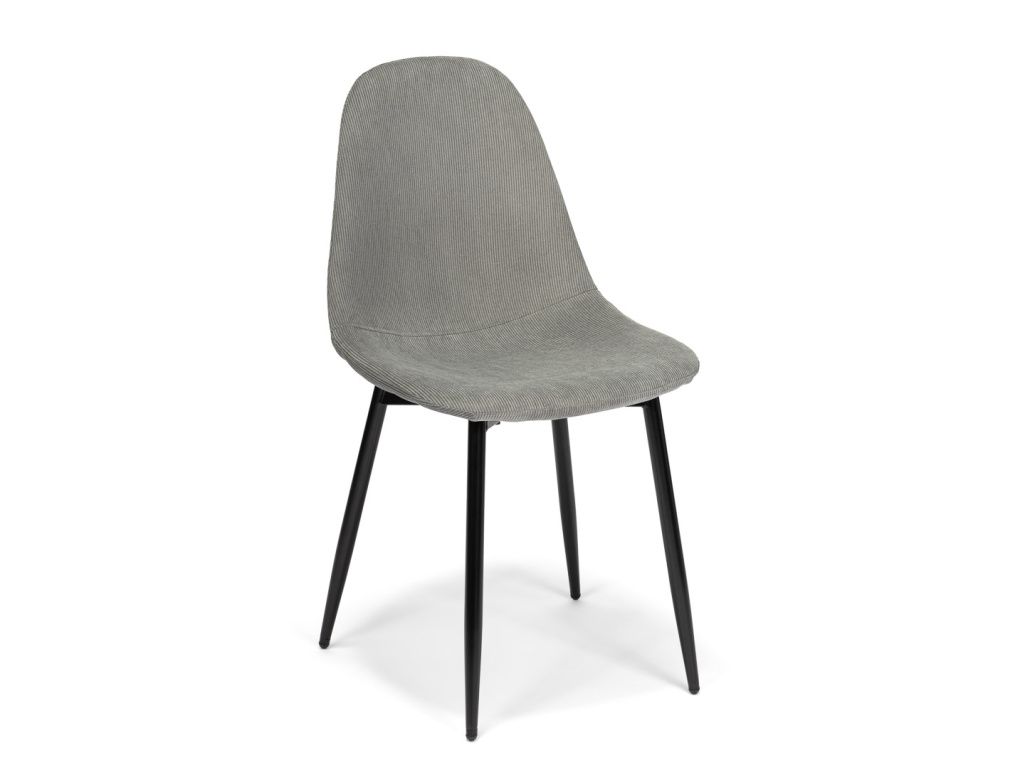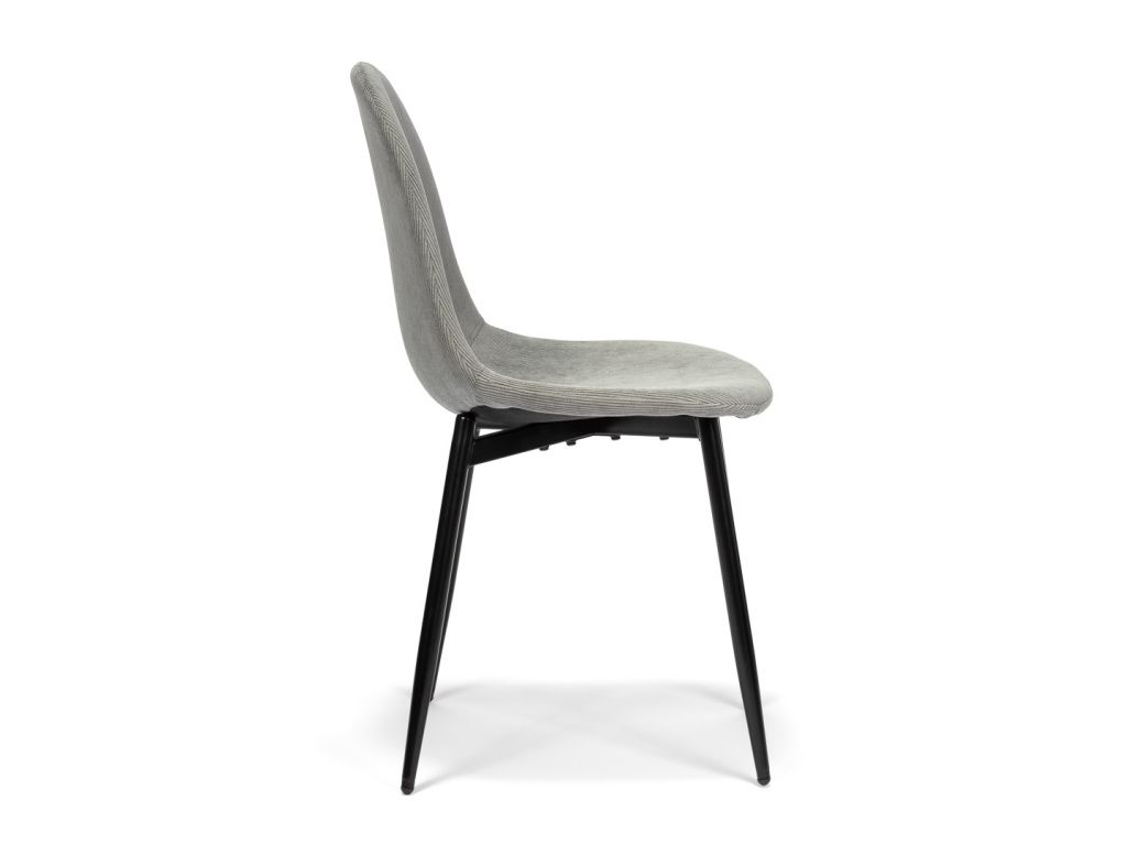 Elegantní židle s moderním minimalistickým vzhledem. Pohodlné čalounění v šedém manšestrovém provedení. Stabilní kovové nohy v černém provedení. Ideální doplněk do jídelny, kuchyně i pracovny. Spojuje komfort, nadčasový design a odolnost.