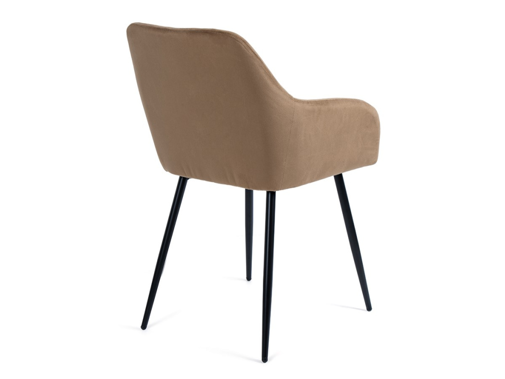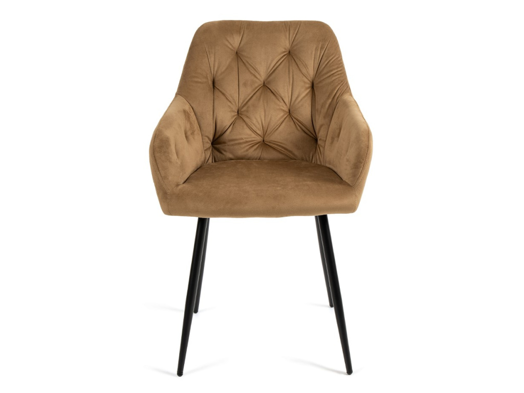 Elegantní židle s područkami a moderním designem. Pohodlné čalounění v béžovém sametu s dekorativním prošíváním. Stabilní kovové nohy v černém provedení. Skvěle doplní jídelnu, pracovnu či obývací pokoj. Spojuje komfort, styl a luxusní vzhled.