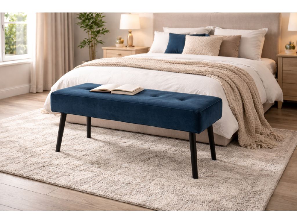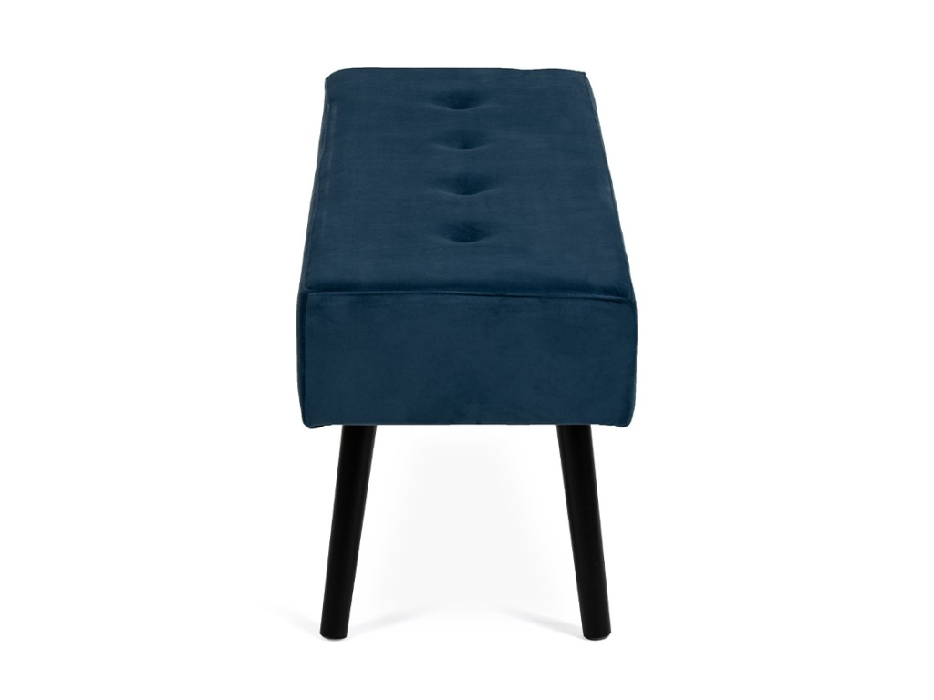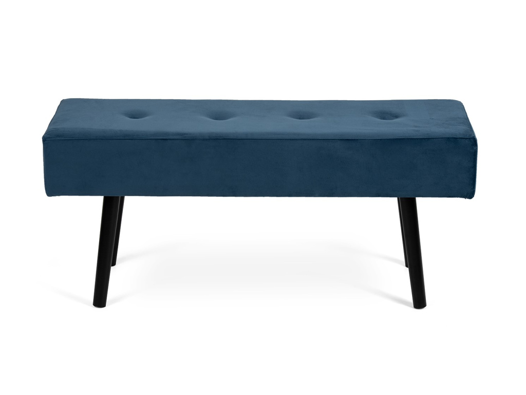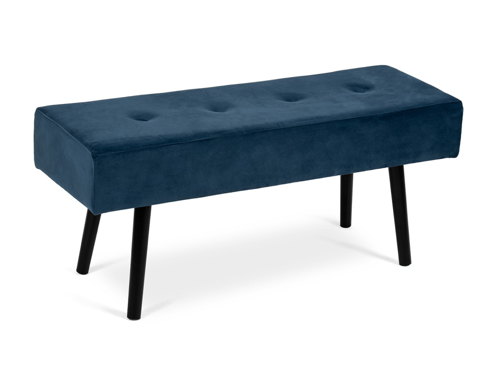 MDF, molitan s modrým sametovým potahem, nohy z borovicového dřeva v černé barvě, 100X35x43 cm.