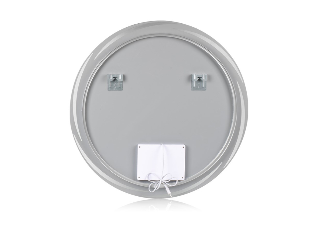 Zrcadlo s LED podsvícením o průměru 80 cm, hliníkový rám s plastovým krytem, 3 úrovně teploty barvy světla.