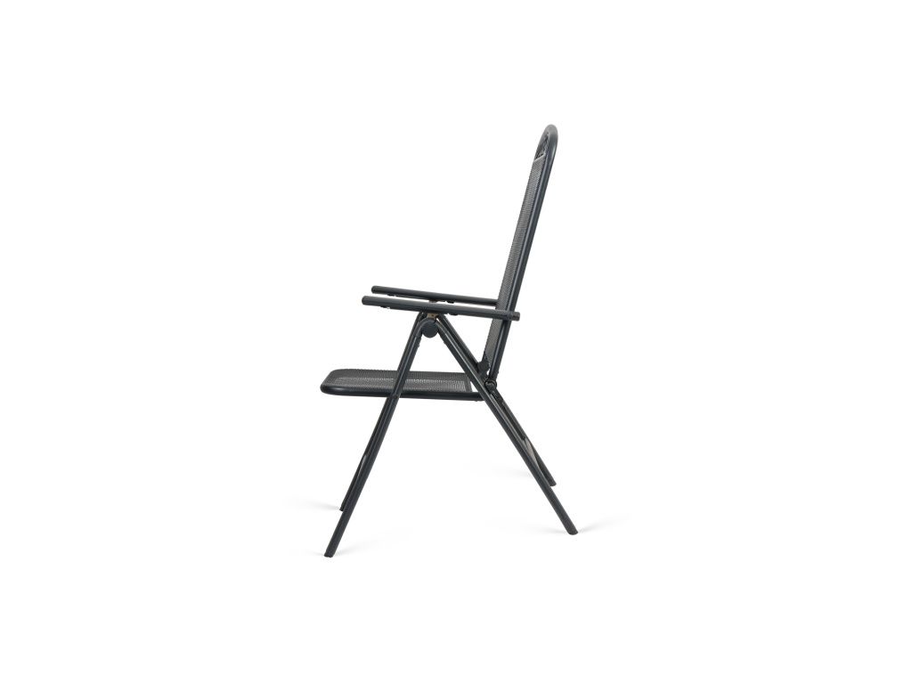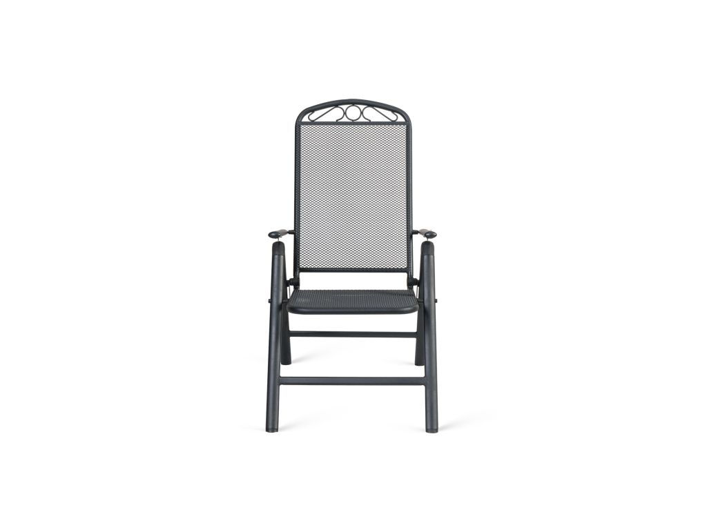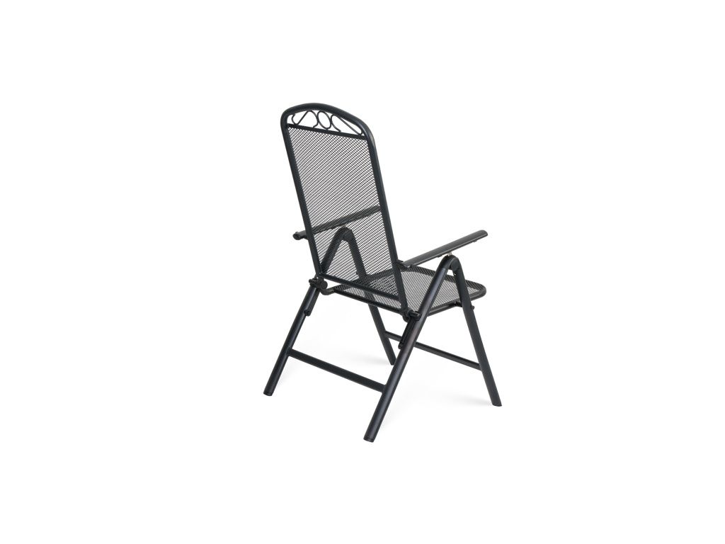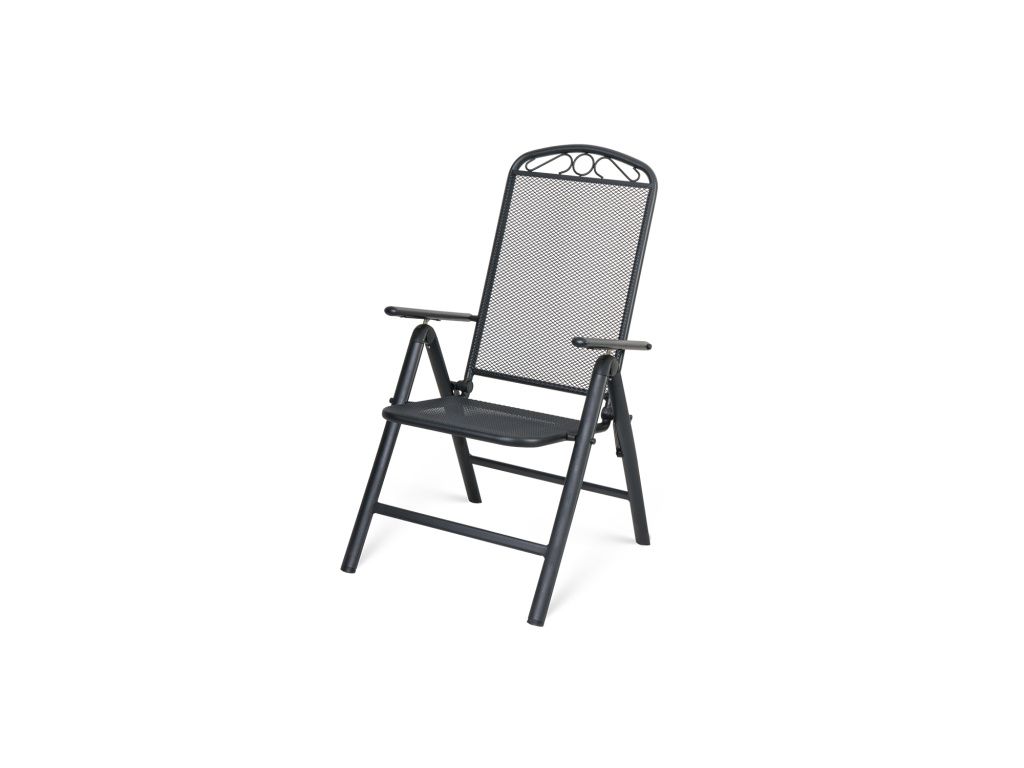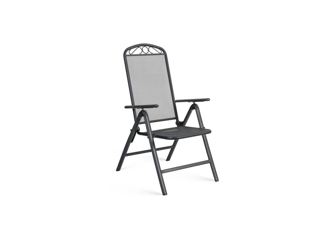 Kovová konstrukce působí stabilně a odolně, zatímco perforovaný sedák a opěradlo zajišťují příjemné, vzdušné sezení i během teplejších dnů. Područky přispívají k většímu komfortu a umožňují pohodlné vstávání i delší relax.