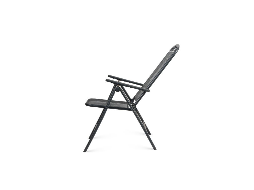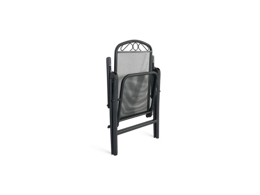 Celokovová skládací zahradní židle, ocel s e-coatingem v černé barvě.