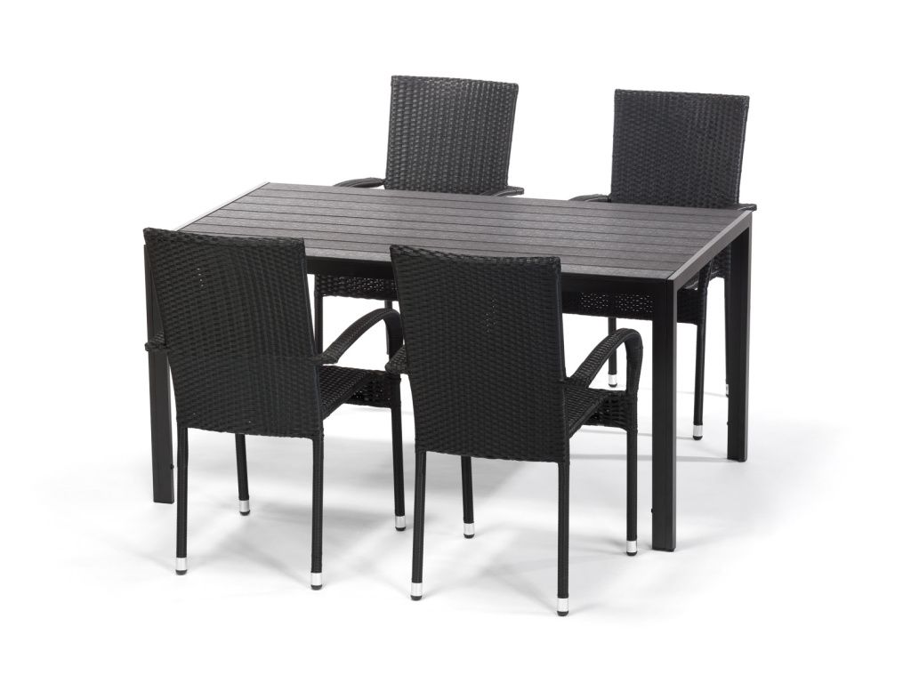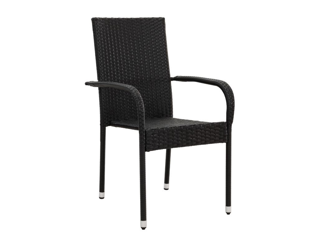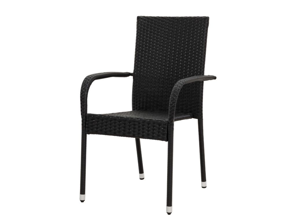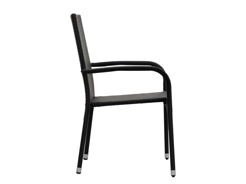 Stohovatelná zahradní židle s ocelovou konstrukcí a výpletem z umělého ratanu v černé barvě. Baleno po 2 kusech.