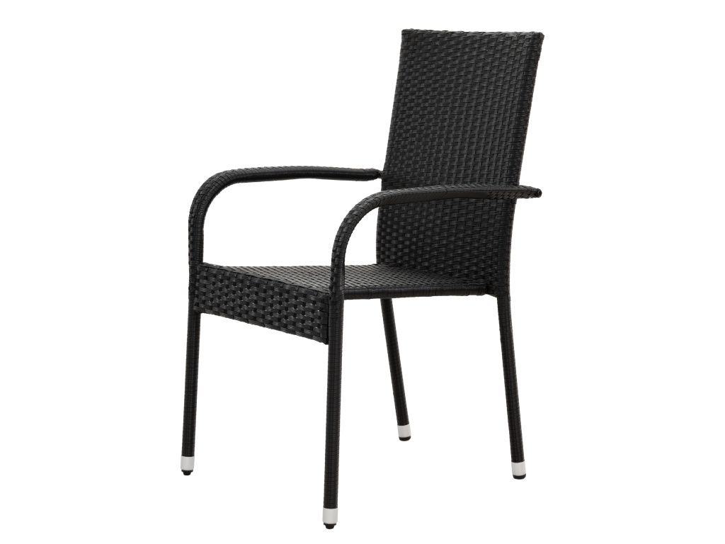 Stohovatelná zahradní židle s ocelovou konstrukcí a výpletem z umělého ratanu v černé barvě. Baleno po 4 kusech.