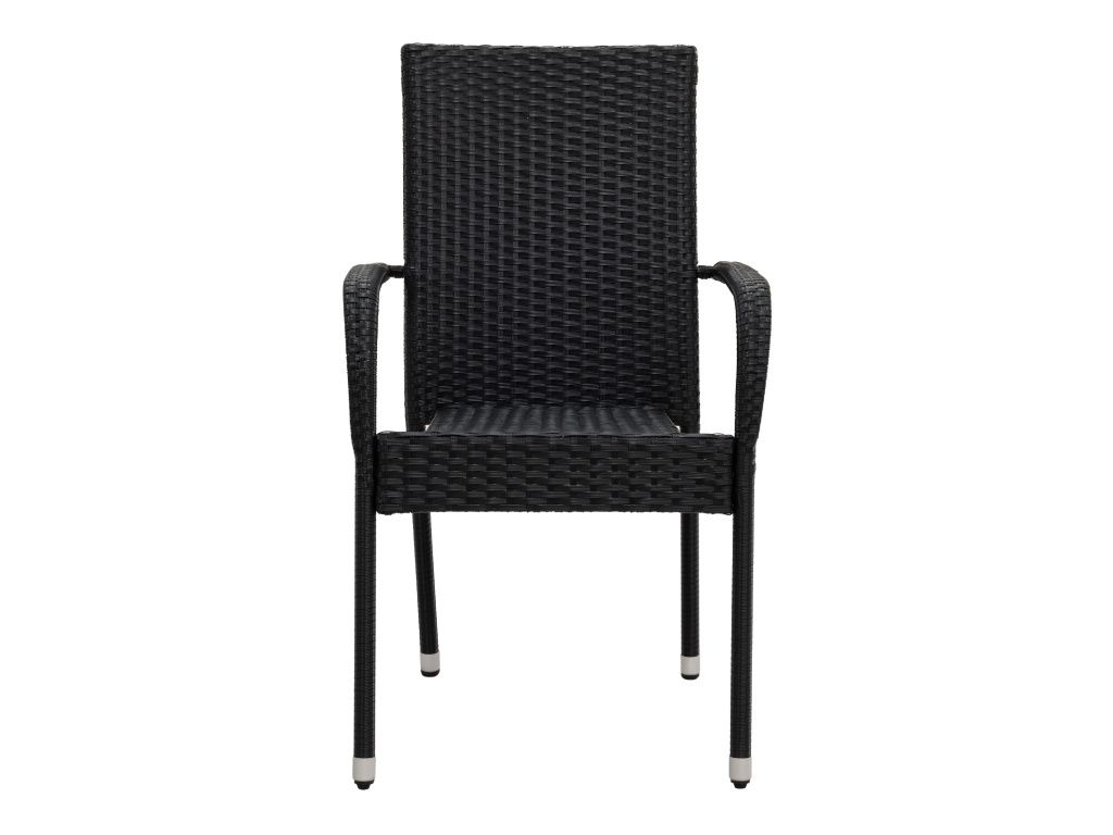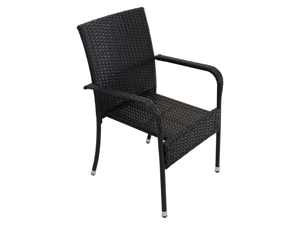 Stohovatelná zahradní židle s ocelovou konstrukcí a výpletem z umělého ratanu v černé barvě. Baleno ve stohu po 37 kusech.