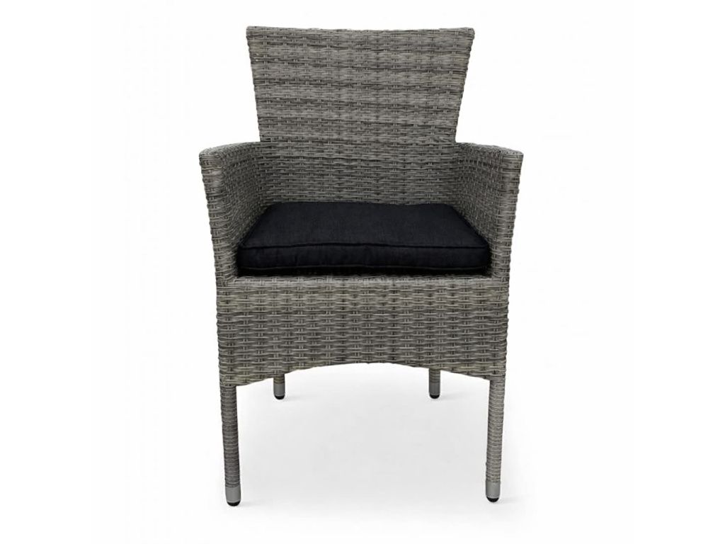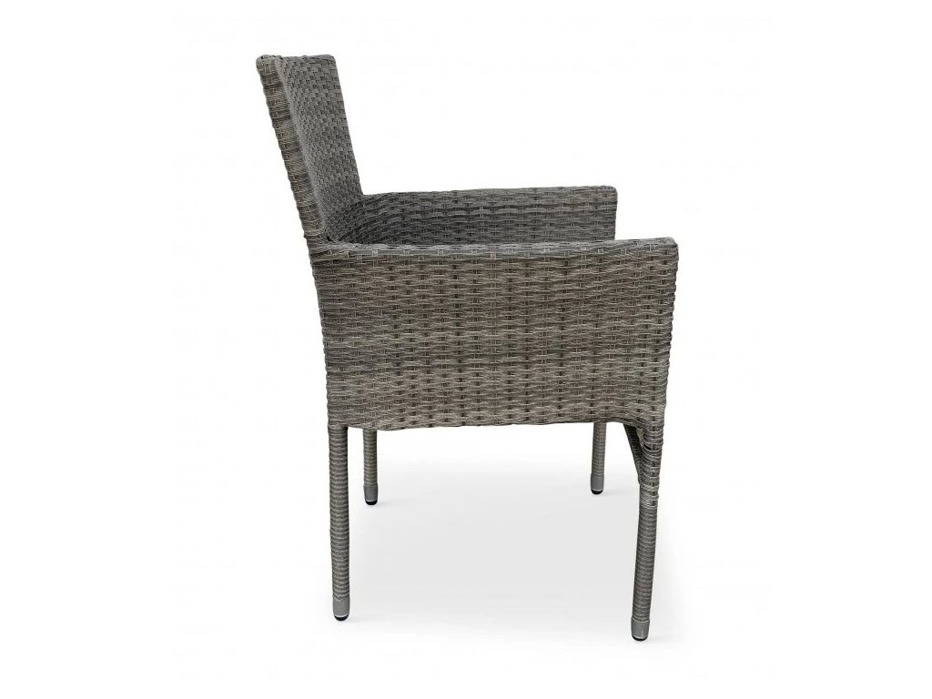 Světle šedý ratanový výplet působí moderně a zároveň přirozeně, takže se snadno kombinuje s dalším venkovním nábytkem. Křeslo působí stabilně a bytelně, přesto si zachovává lehký a vzdušný vzhled, který se hodí do většiny venkovních prostor.