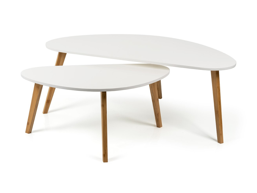 Odkládací stolek, lakovaná MDF deska v bílé barvě, bambusové nohy.