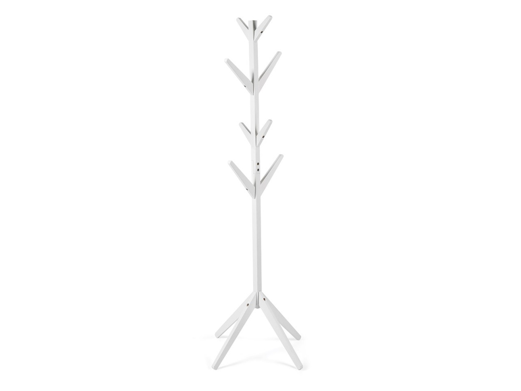 Moderní stojanový věšák s minimalistickým designem. Více háčků pro pohodlné zavěšení oblečení či doplňků. Stabilní základna zajišťuje pevnost a odolnost