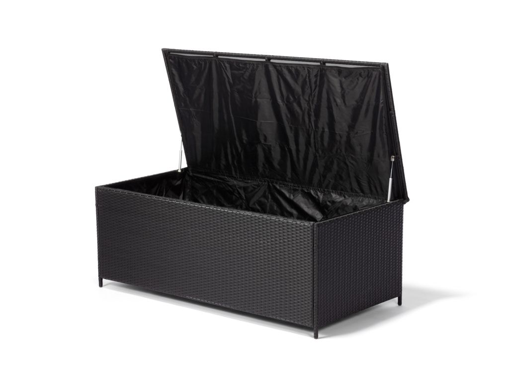Zahradní úložný box z ratanu v černé barvě, ocelová konstrukce, 160x80x80 cm
