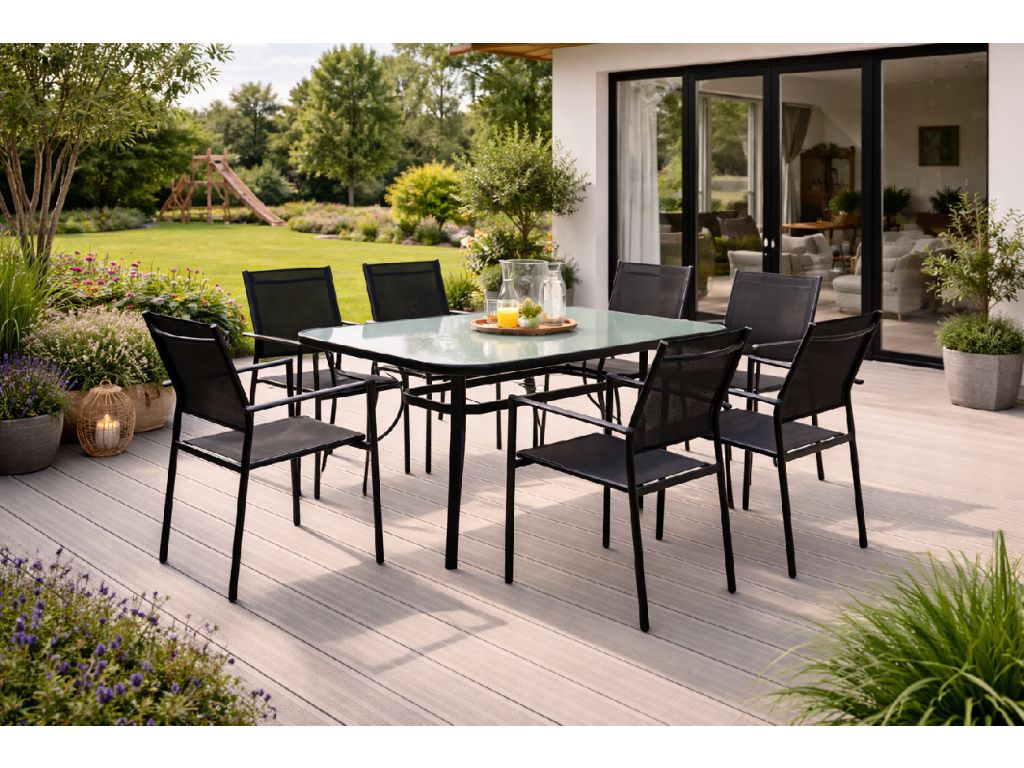 Čisté linie a neutrální černé provedení umožňují snadné sladění s různými typy venkovních stolů a sestav. Židle je vhodná pro terasy, balkony i zahrady, kde poskytne komfortní sezení při každodenním používání i při delším posezení s rodinou nebo přáteli. Díky použitým materiálům je praktickou volbou pro venkovní prostředí bez nároků na složitou údržbu.